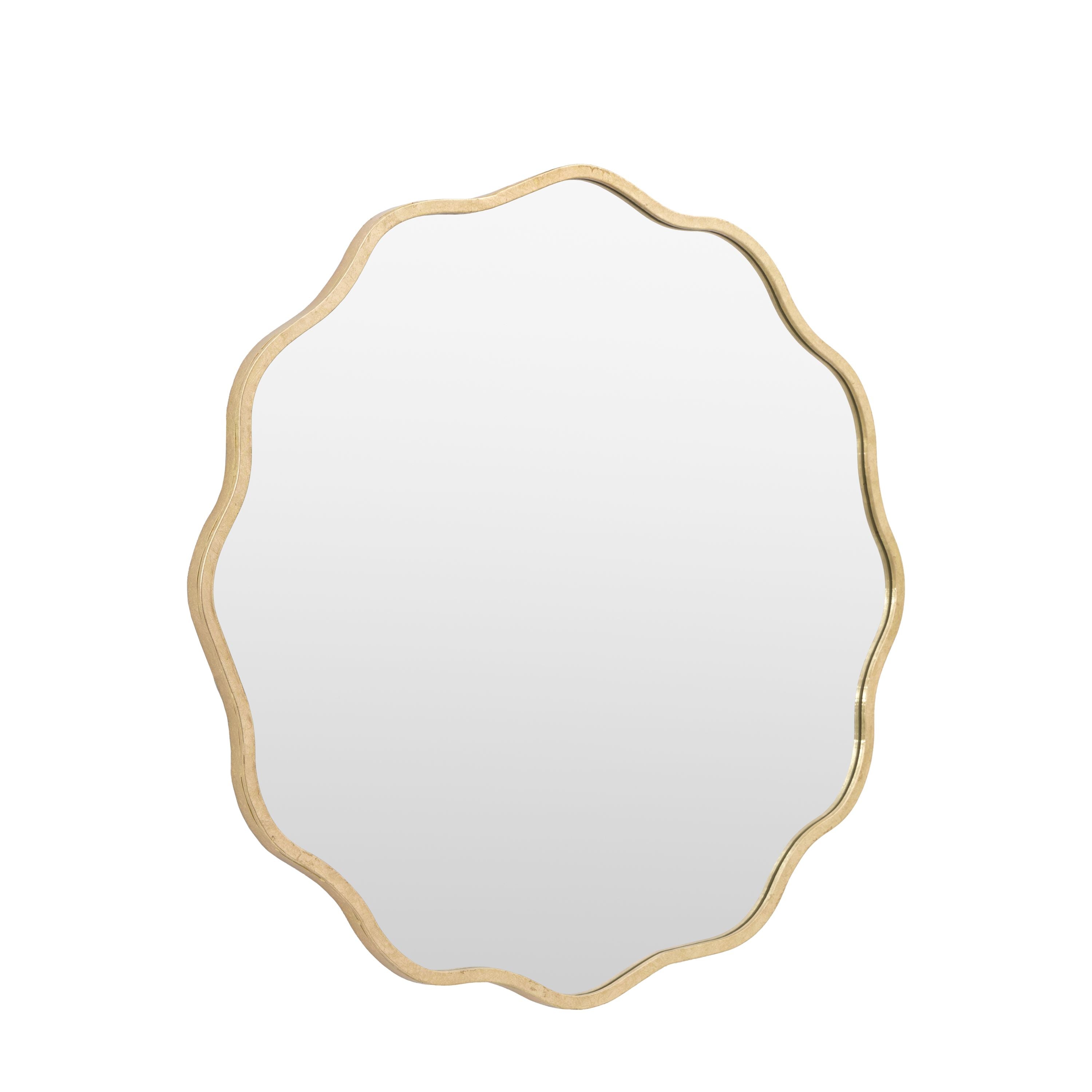 Add a dose of flair into your decor with our quirky round wavy edge round metal mirror in a rustic gold finish. Crafted from durable metal, this mirror combines a bold, unique design with high-quality craftsmanship.