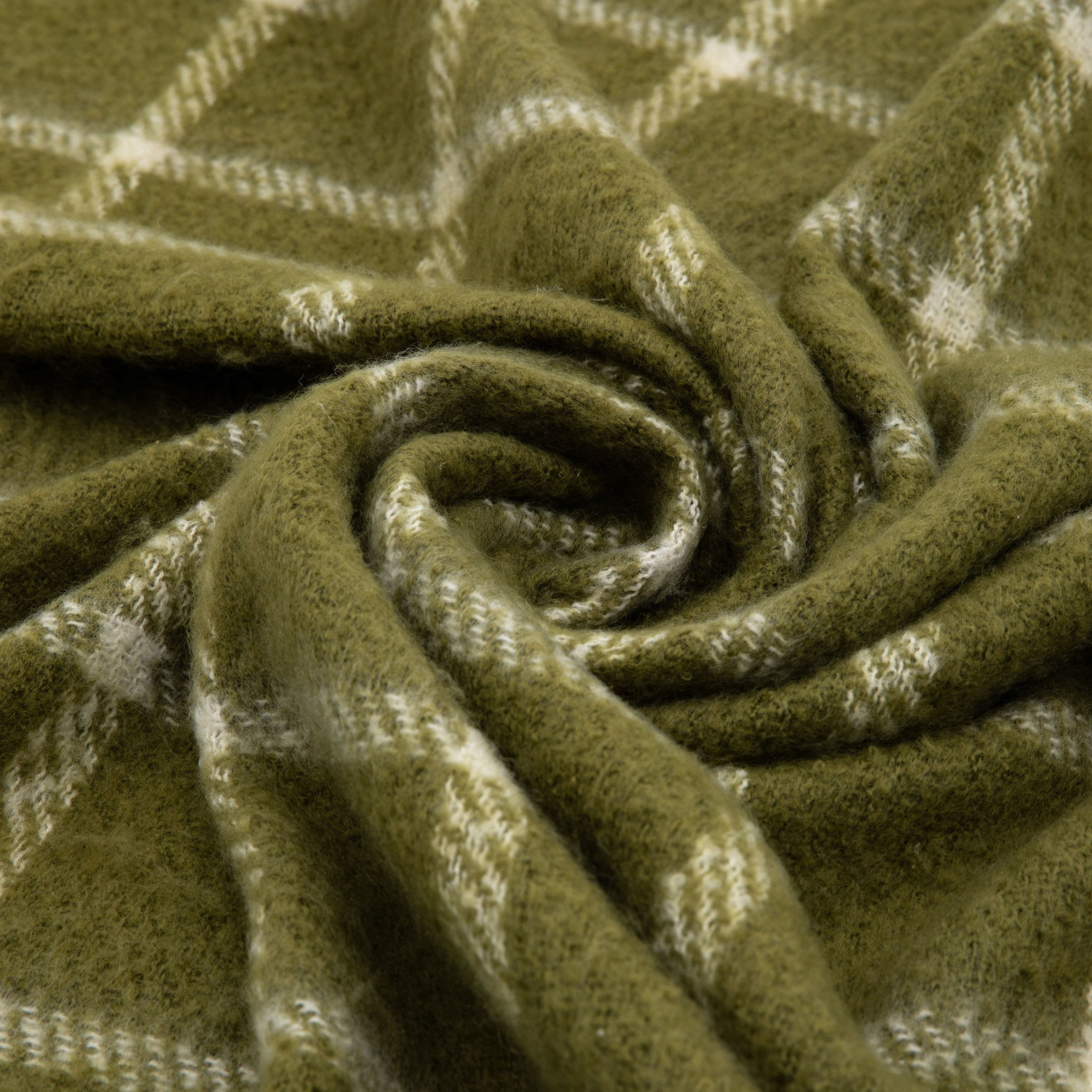 Poly Faux Mohair Check Throw Green