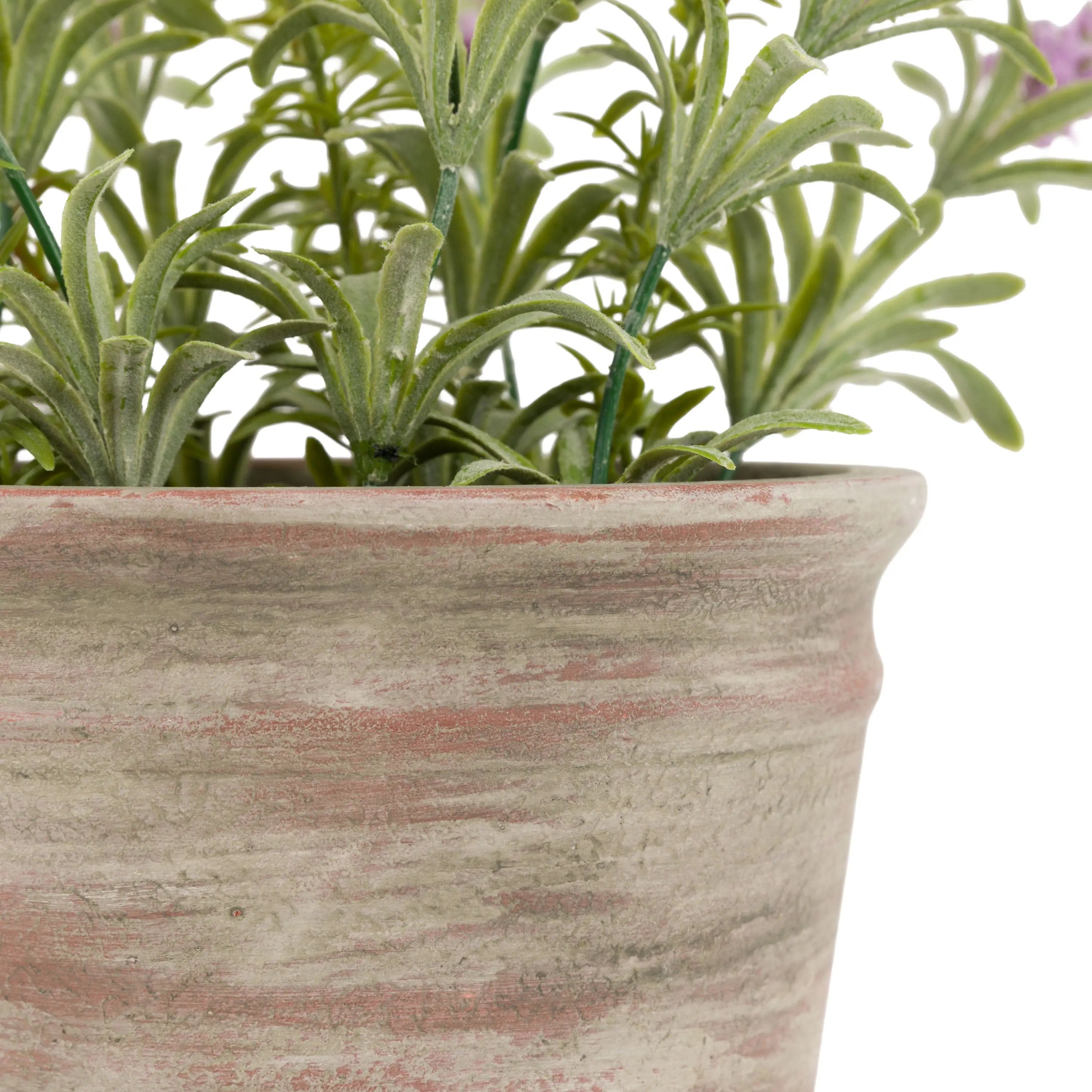 Bring the country kitchen feel to your home without any of the maintenance or hassle. In a rustic terracotta pot, the look of the real touch feel leaves of this faux lavender plant are finished off with a real looking soil effect.