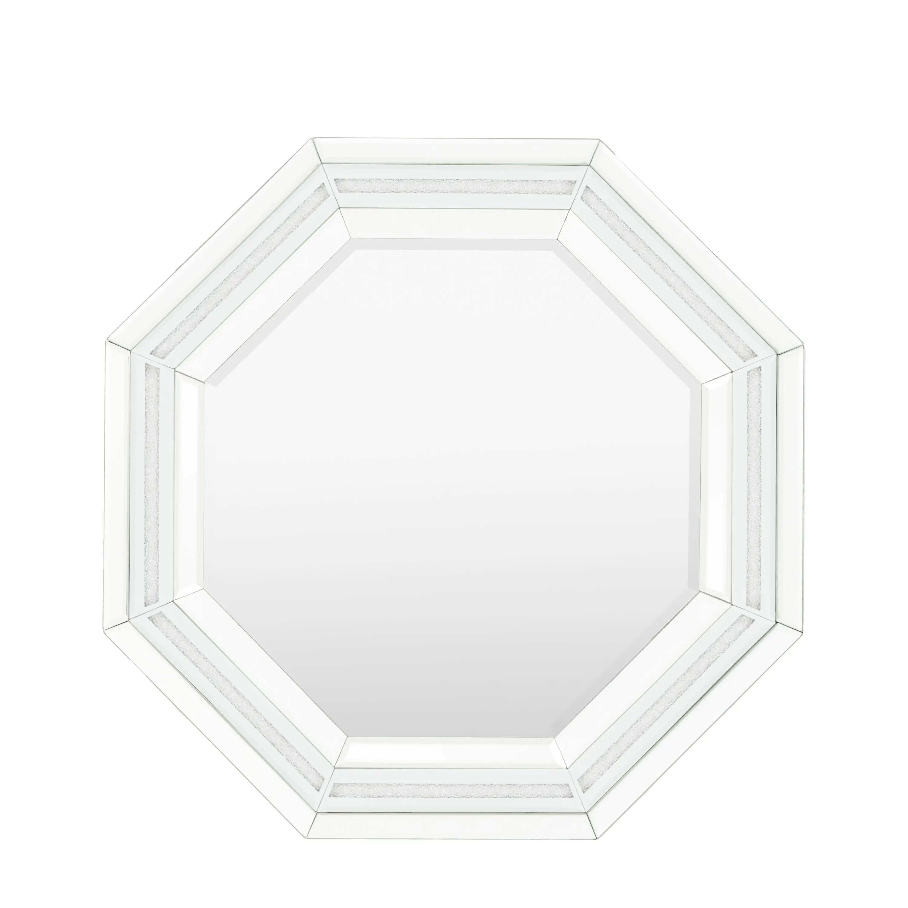 Eccentric hexagonal design with a stunning crackle effect frames this lovely bevelled mirror.