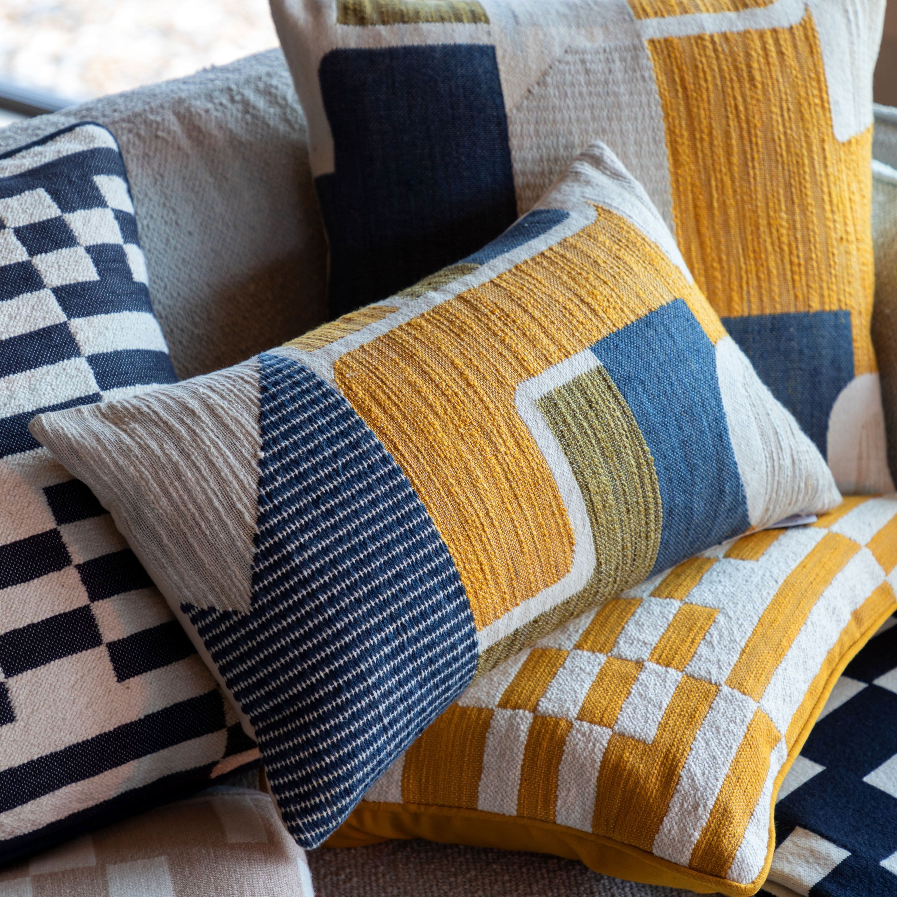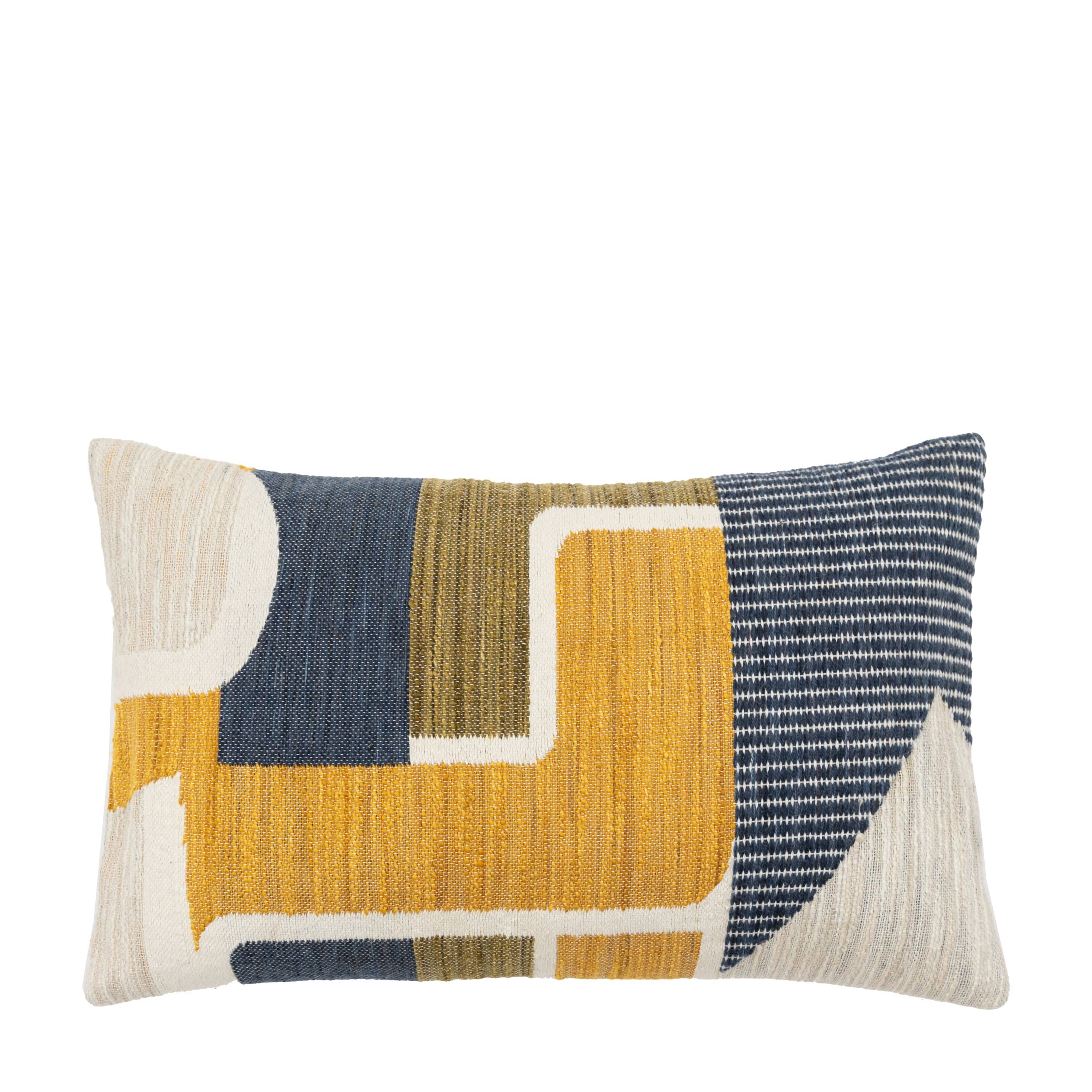 Quin Jacquard Cushion Ochre and Navy Rectangle