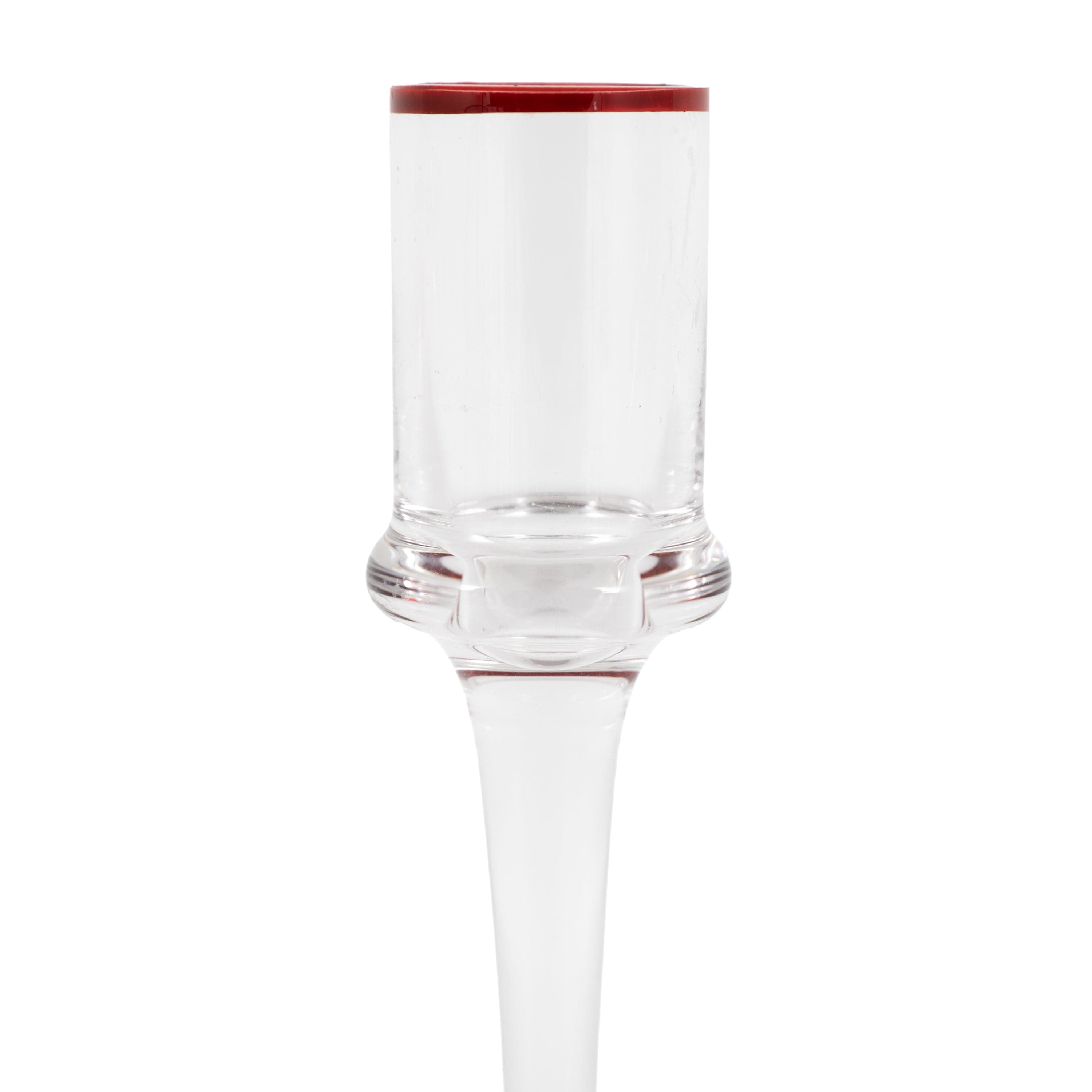 The simple red rim detail on this set of 2 glass candlesticks creates a stand out feature, perfect for festive styling or use all year round.