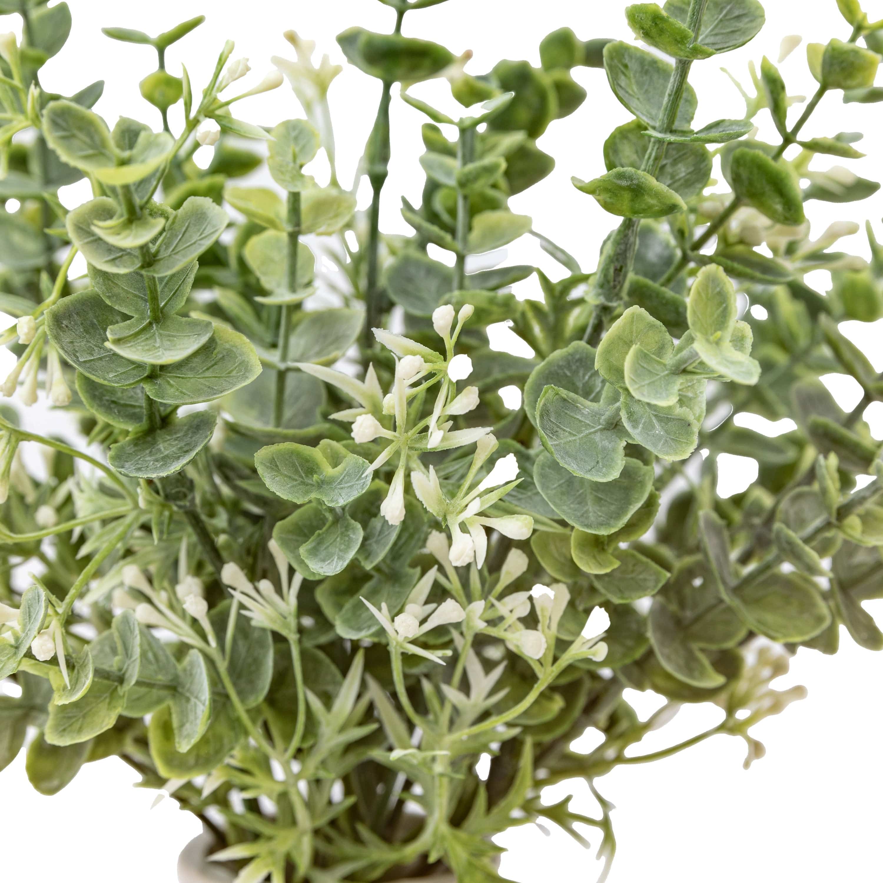 Bursting with style this retro vase is just what your room needs. The rich green meadow foliage is highlighted by eucalyptus stems, all complimented by a on trend white retro patterned vase.