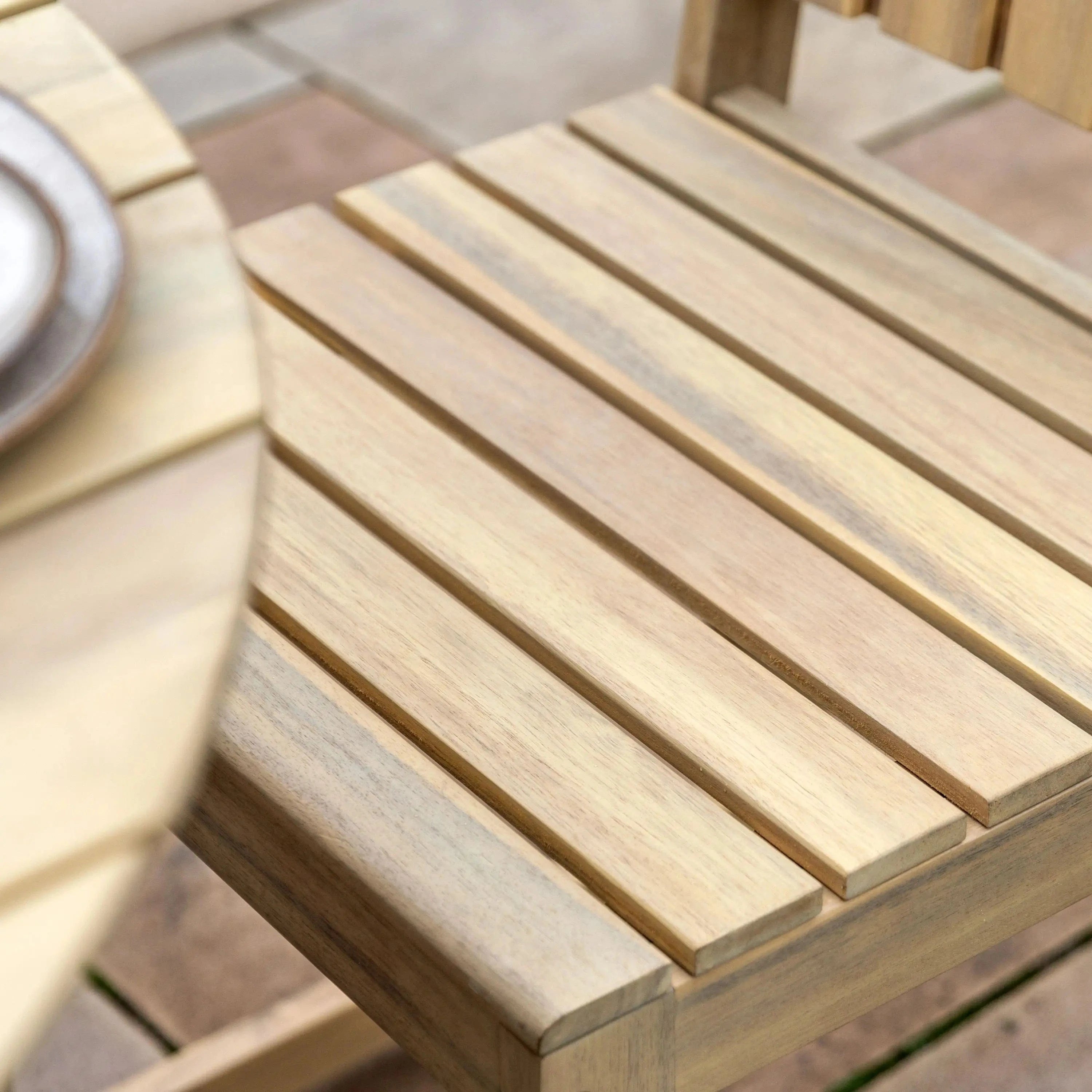 Introducing the Rialto Dining Chair 2pk, the perfect addition to your outdoor dining space. Made from durable acacia, this classic chair offers both style and comfort. With its slatted back and seat, it provides comfortable support while adding a touch of sophistication to your outdoor setting.