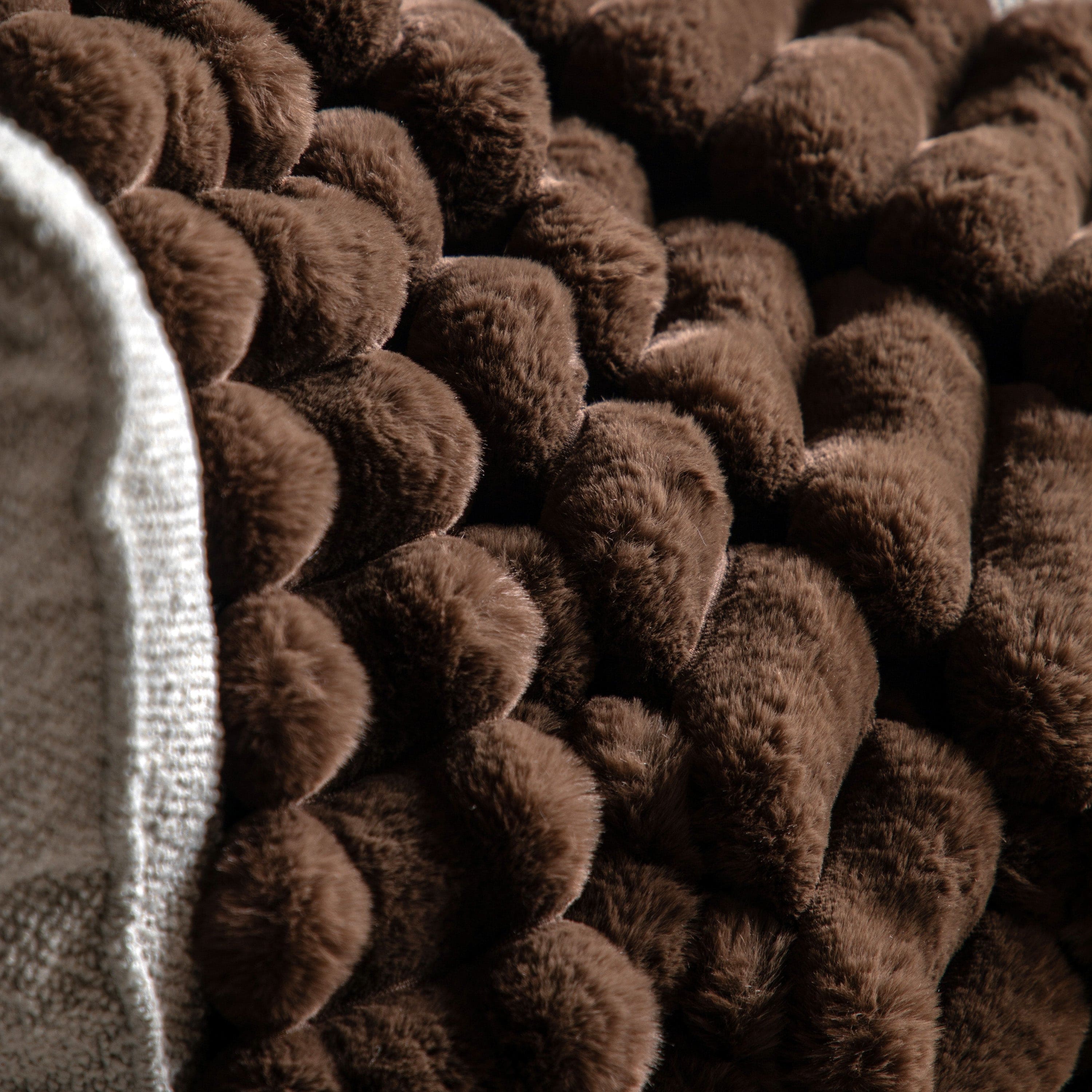 A rich and luxurious chunky ribbed faux fur throw to bring tactile warm to any interior.