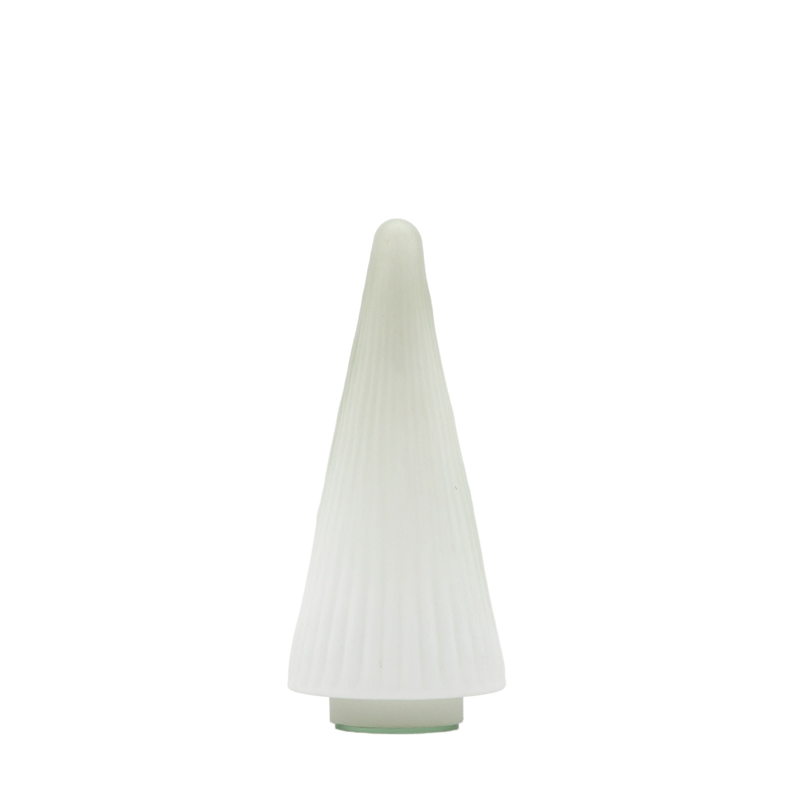 This stunning tree decoration offers a contemporary twist on a tradition Christmas tree. Featuring ridges that add texture to the beautiful white frosted glass, this decoration is perfect to add to any Festive display. Also available in a larger size and the pair look fantastic when styled together.