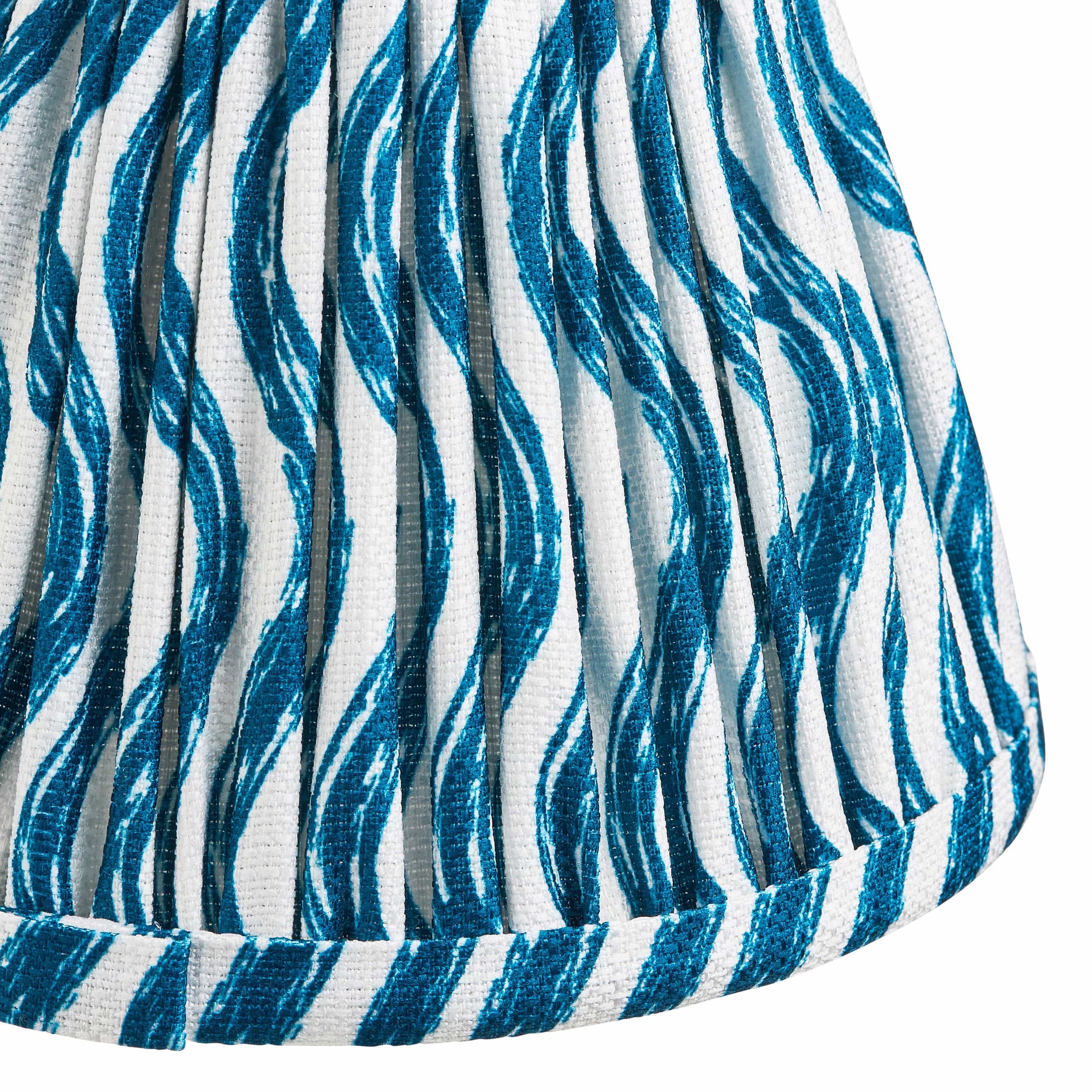 Introducing the Ripon Shade Marlin Blue 16cm, the perfect addition to your home decor. This tapered shade features a clip gimbal, making it easy to fit on golf or candle bases. The stunning Ripon pattern in marlin blue adds a touch of elegance to any room, while the taped edge detailing and plain inner lining provide a clean and sophisticated look.