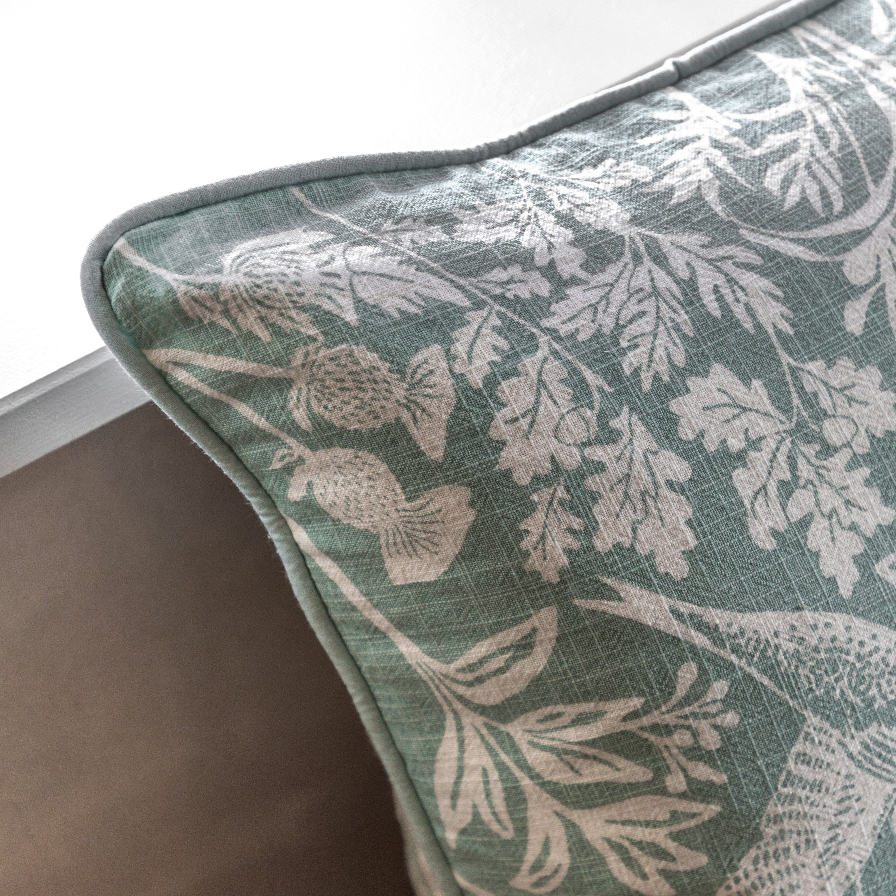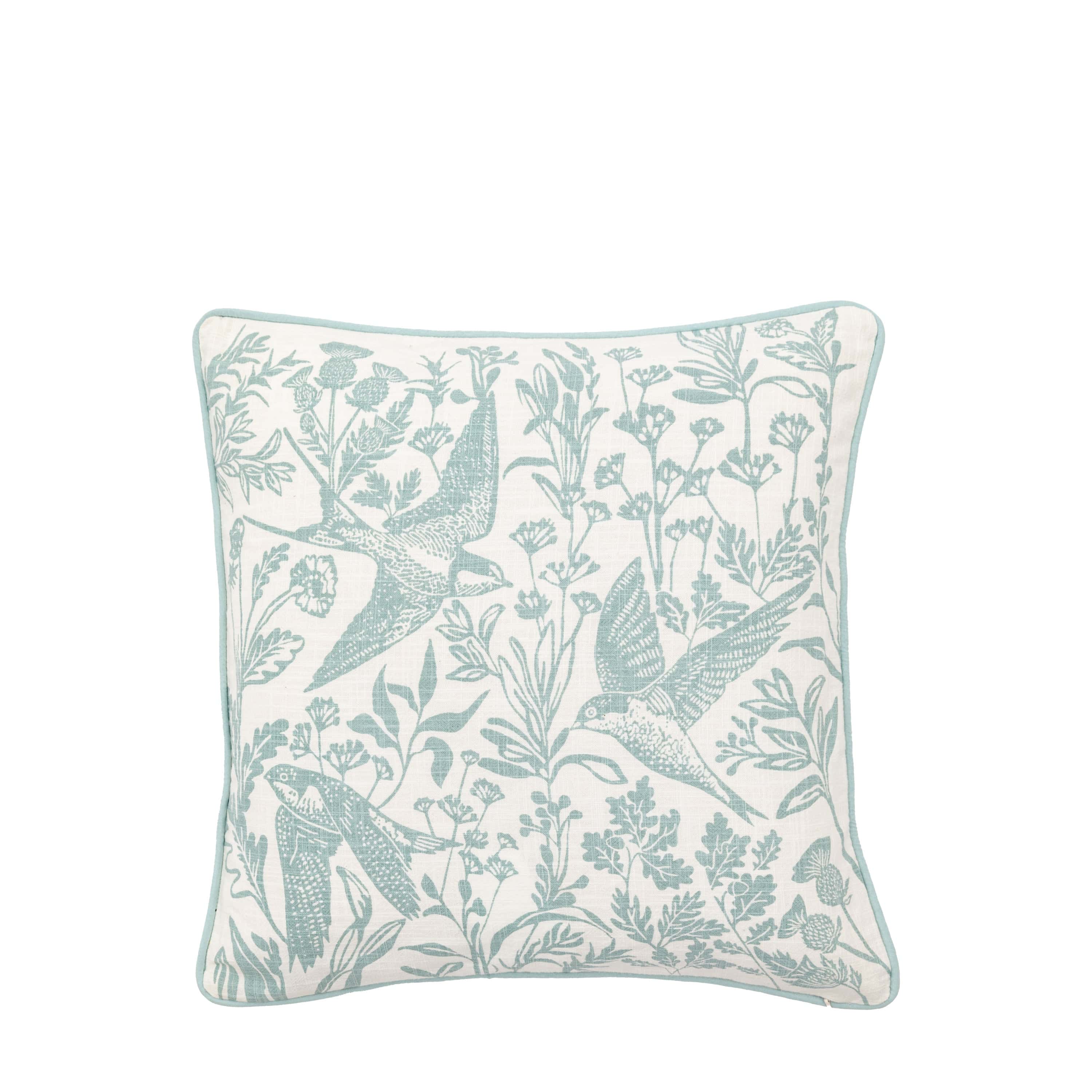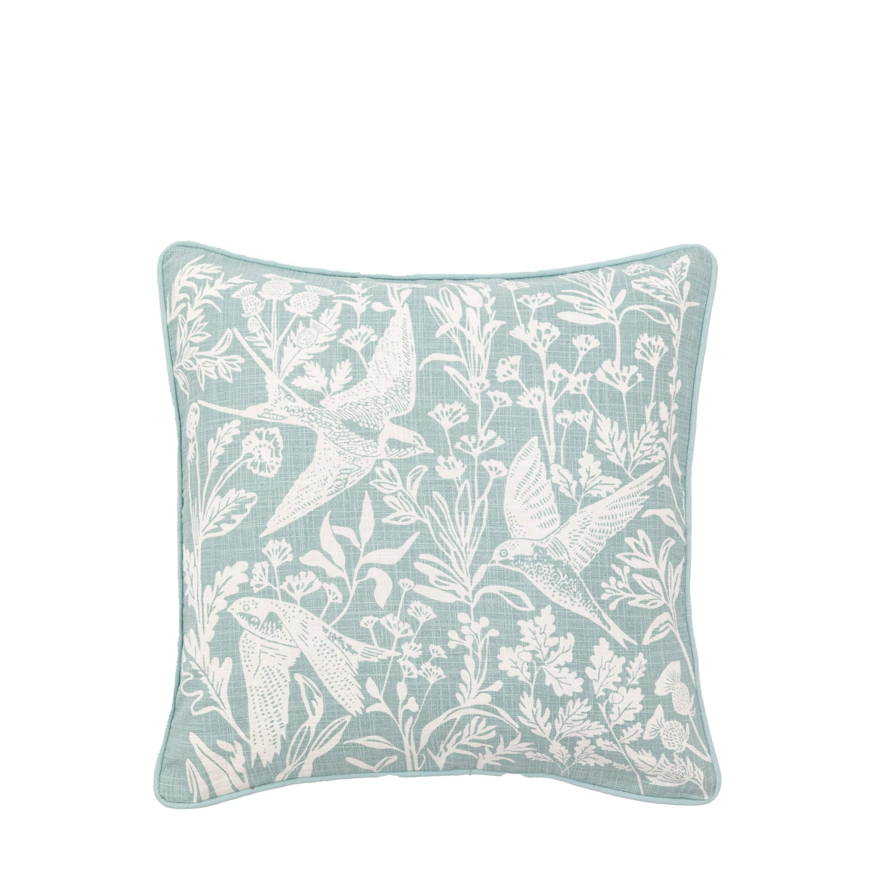 With a folk inspired design full of birds and flowers this cushion will add a quirky and charming touch to your room. The block printed style in pale blue and white is inverted on the other side, giving you a choice of main colour.