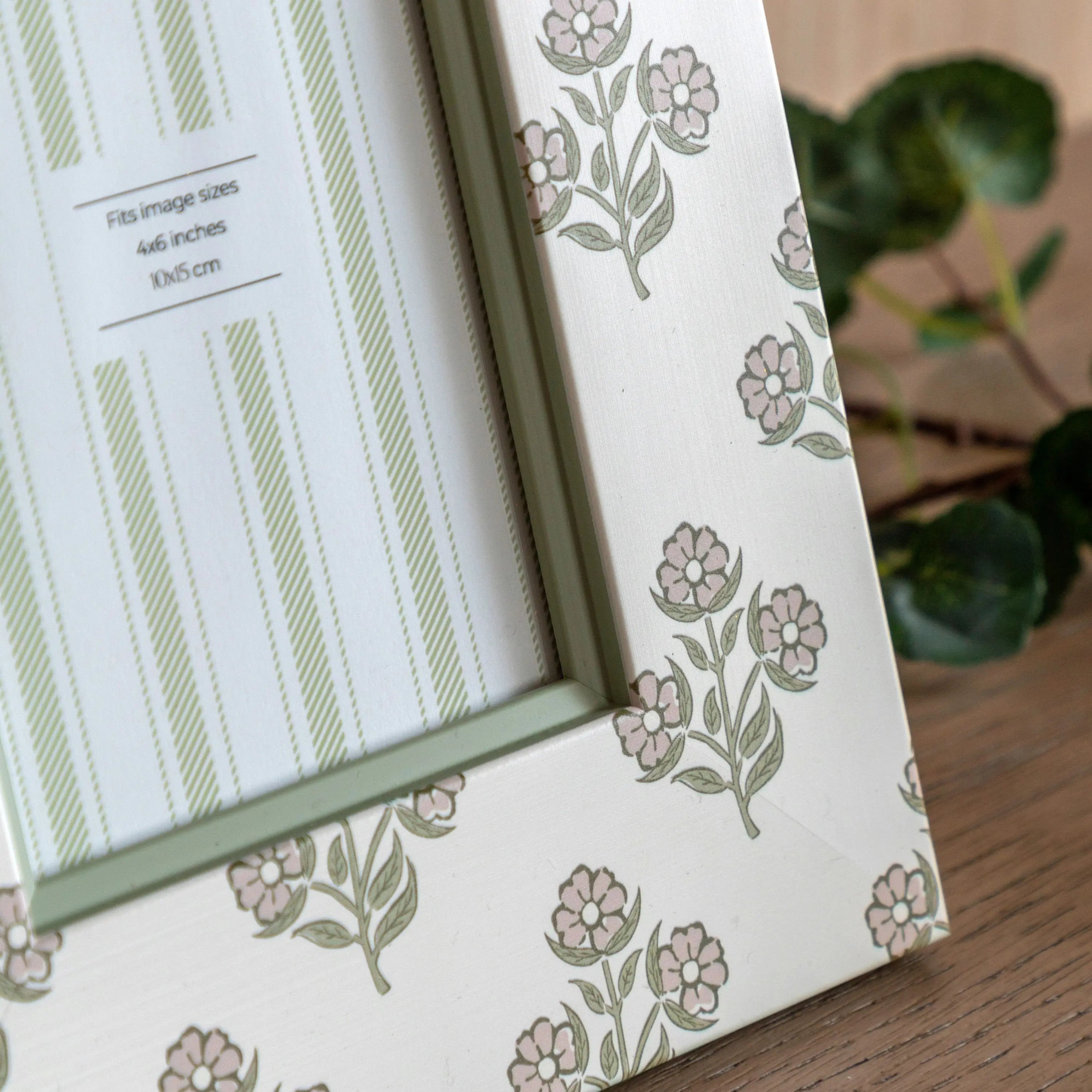 Frame your favourite photos with this pair of charming photo frames. With a country classic style, each frame is adorned with a floral pattern and a soft striped backdrop.