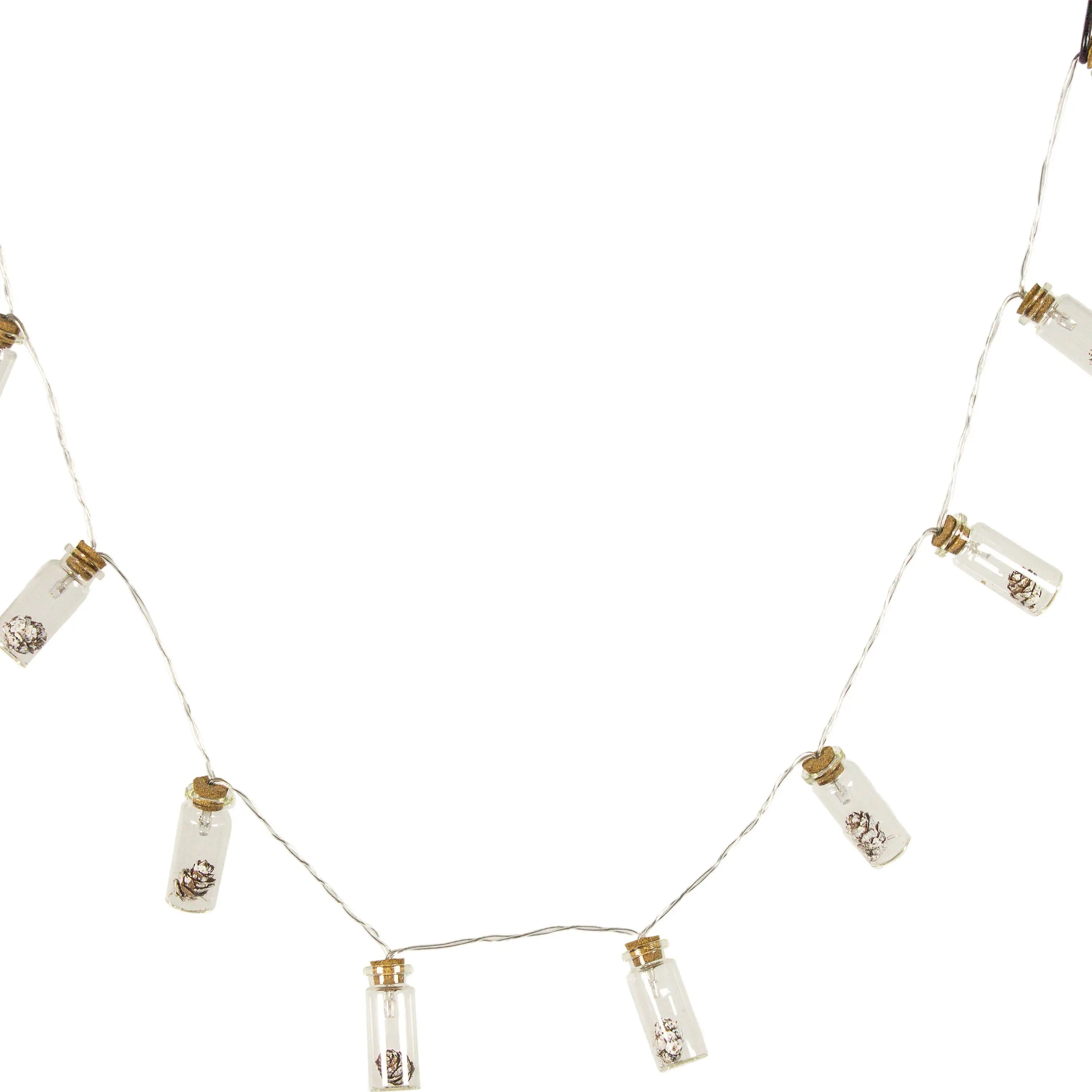 These intricate, battery powered lights feature small bottles each containing a pinecone, when switched on they give off a warm glow.
