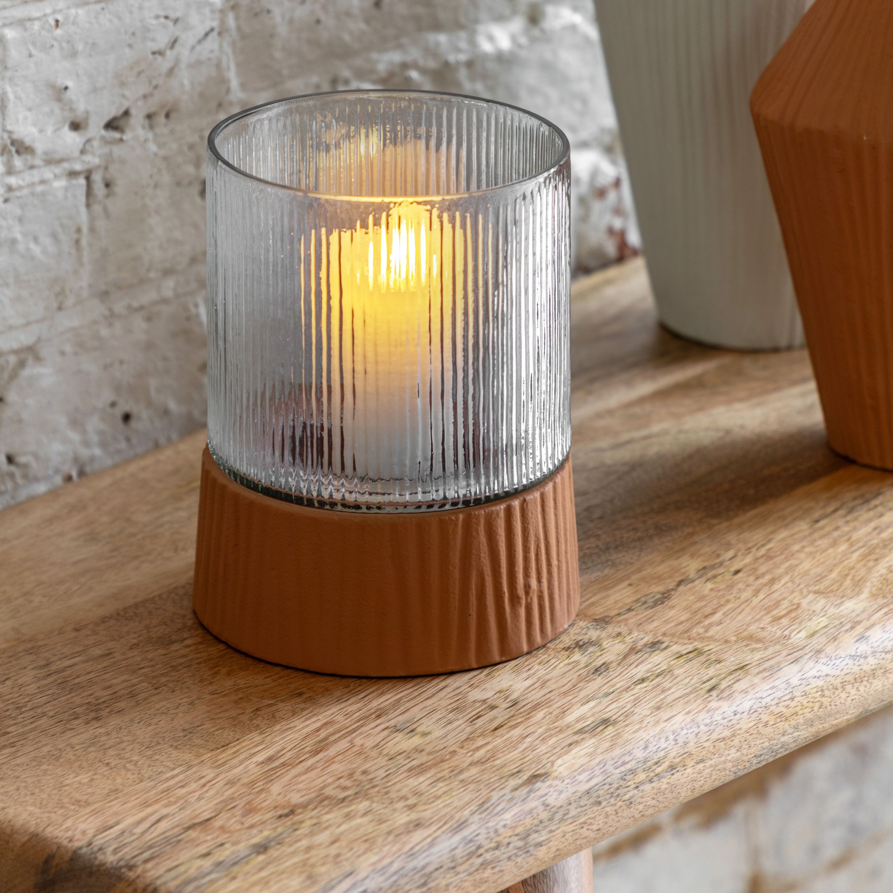 Introducing the Sahara Hurricane Terracotta Small, a hand-crafted lantern that will add a touch of elegance to any room. With its matt ceramic finish base and textured glass lamp, this lantern emits a warm and cosy glow that will create a welcoming atmosphere in your home.