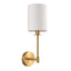 Introducing the Sancho 1 Wall Light Satin Brass, a modern classic style wall light that will add a touch of elegance to any room. With its sleek satin brass finish and vintage white fabric shade, this light is both simple and easy to place in any interior.