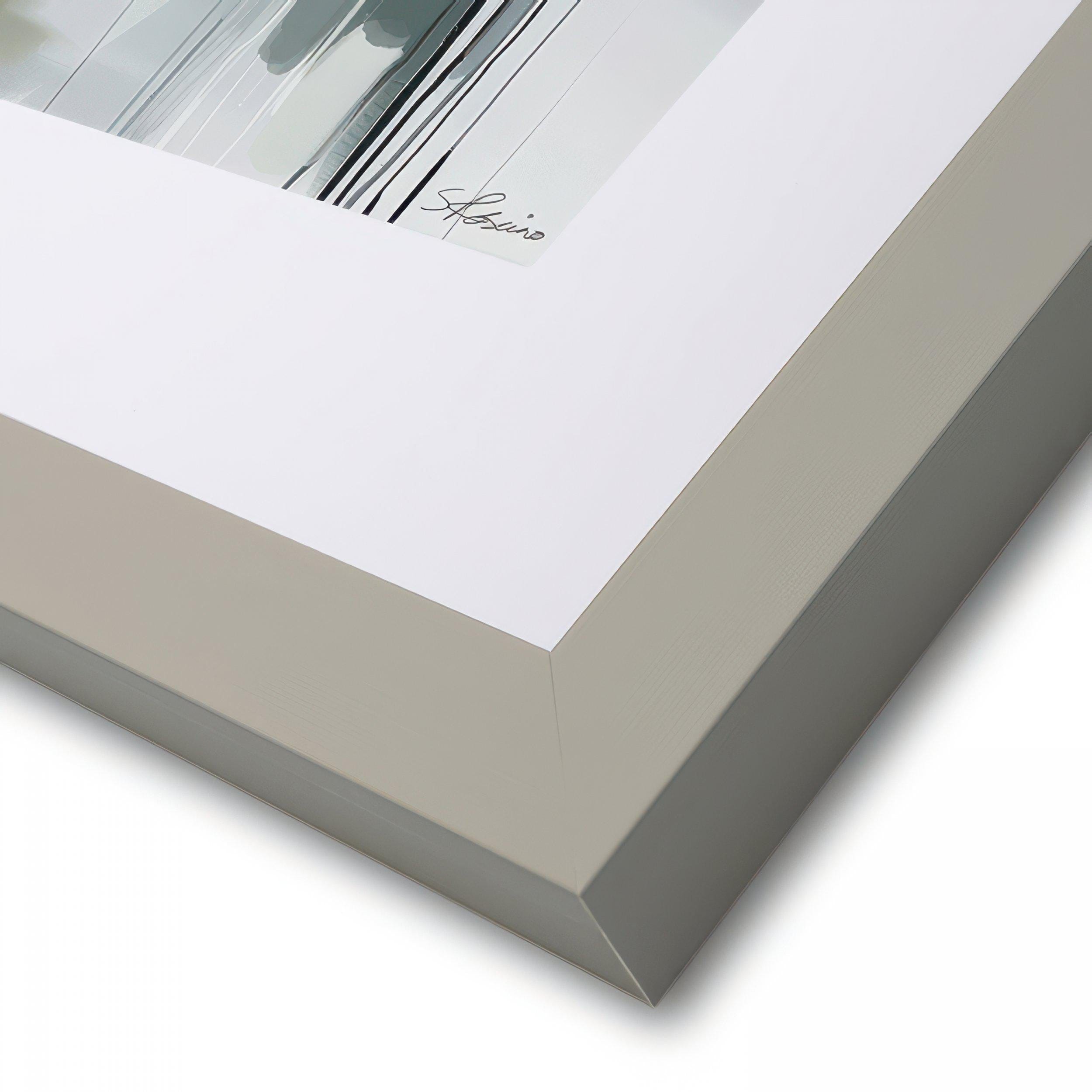 Set against an atmospheric backdrop, Sabrina Roscino's illustration of an isolated coastal village captures a remote sensation through colour and stroke technique. With its contemporary appeal, the modern composition creates a unique collaboration between the ambience and the climate that cuts through the beauty found in solitude. The abstract wall art is glazed with a taupe-textured frame that holds a minimalistic style.