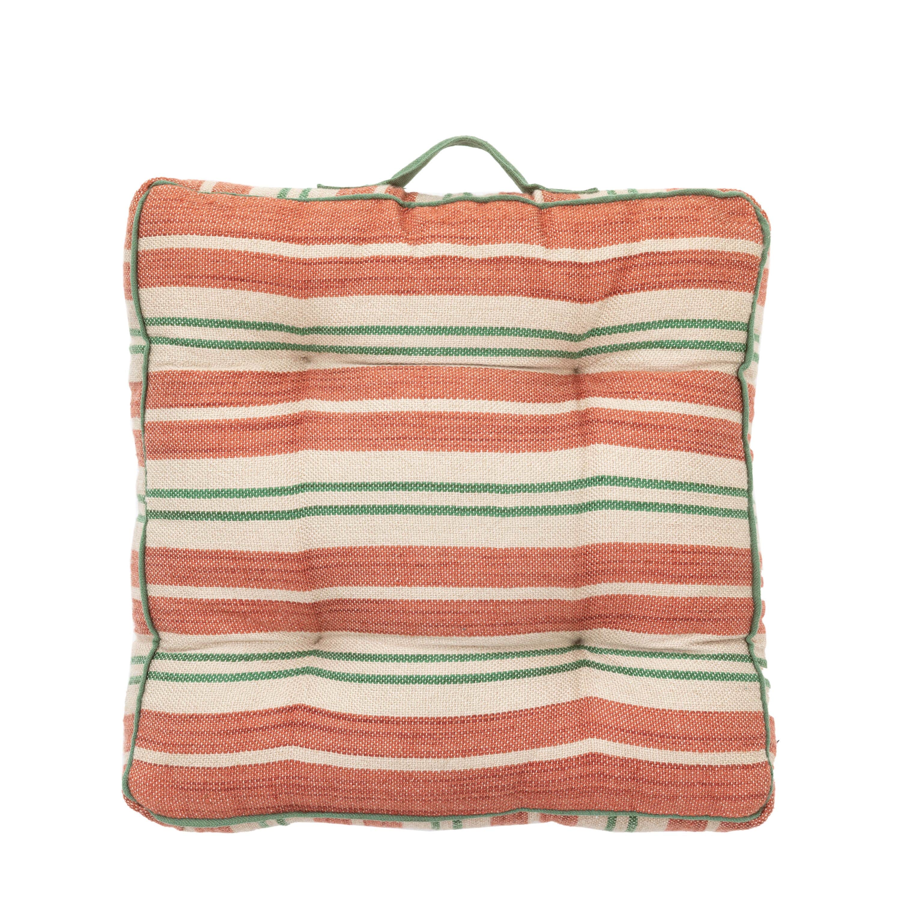 Introducing the Sina Stripe Woven Floor Cushion Green, the perfect addition to any room. With its flexible design, this cushion offers an alternative to traditional seating and can easily be stored away when not in use. The carry handle makes it convenient to position wherever you want, while the green and pink stripes add a pop of color to your space. But what sets this cushion apart is its fast delivery, ensuring you can enjoy both flexibility and style in no time.