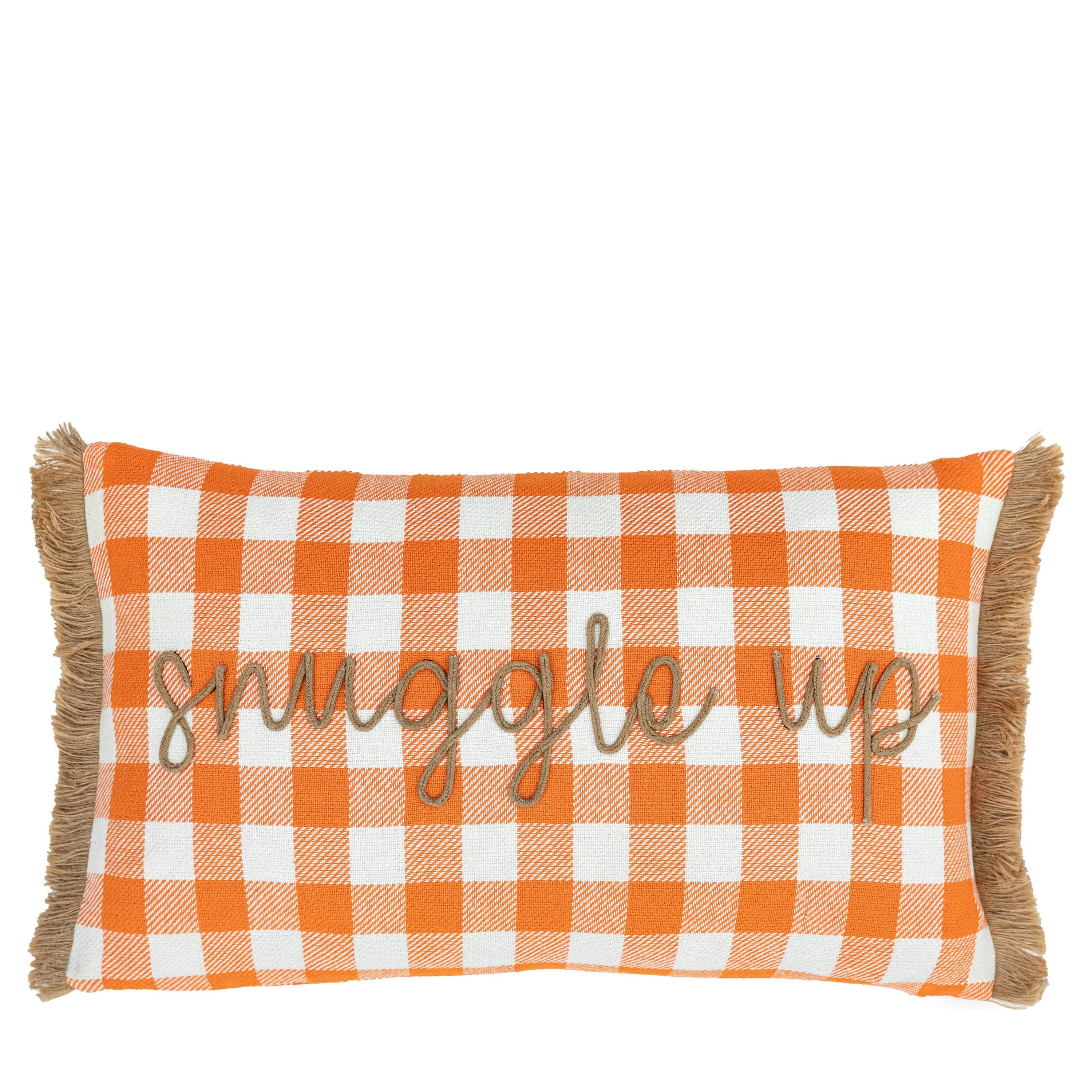A characterful autumnal cushion featuring an bold check embellished with corded work detailing and fringed edges.