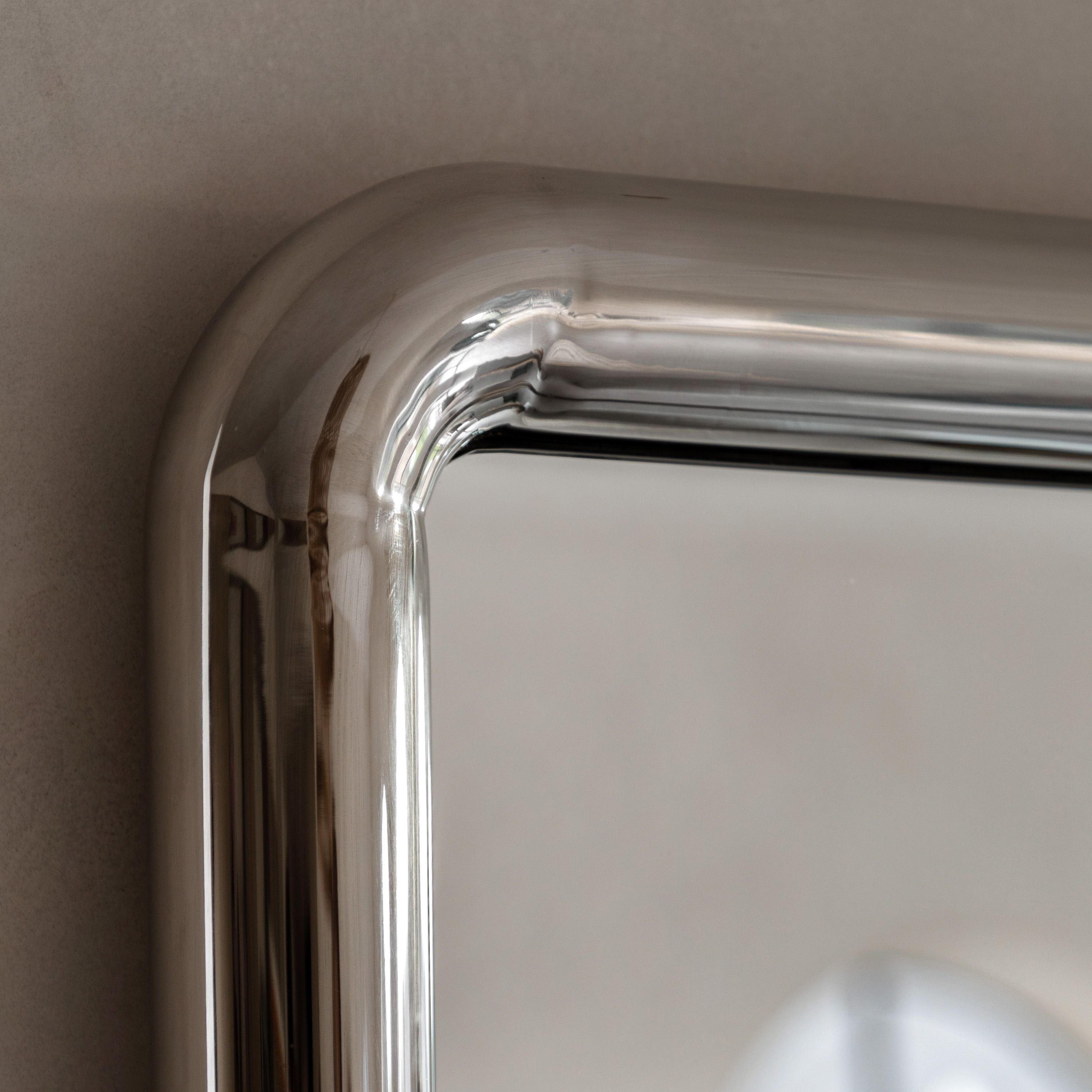 Embrace modern design with this sleek and sophisticated mirror. The smooth, curved lines of the highly reflective frame give it a contemporary edge, making it a perfect addition to modern, minimalist, or art deco-inspired interiors. This mirror is a statement piece that adds both style and functionality.