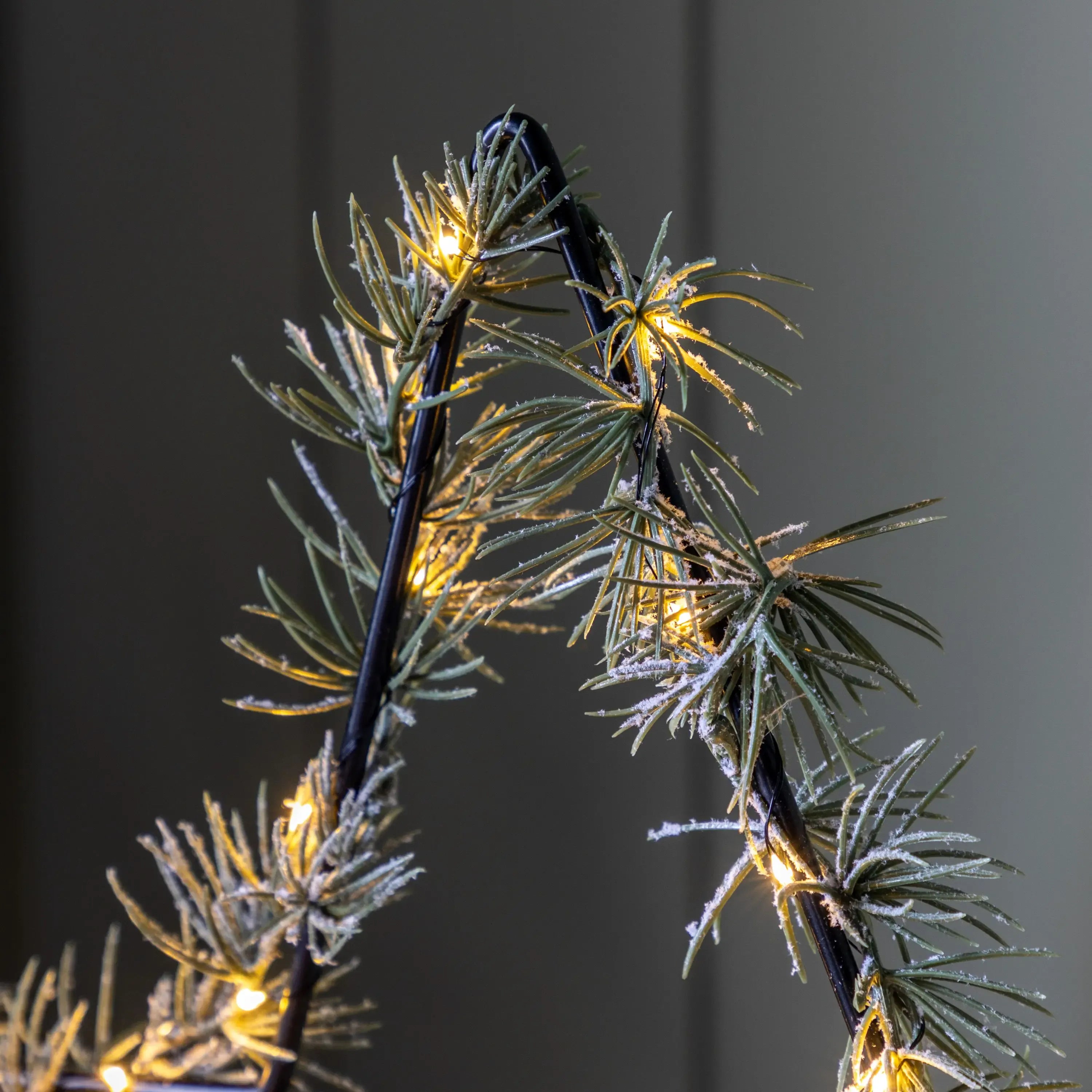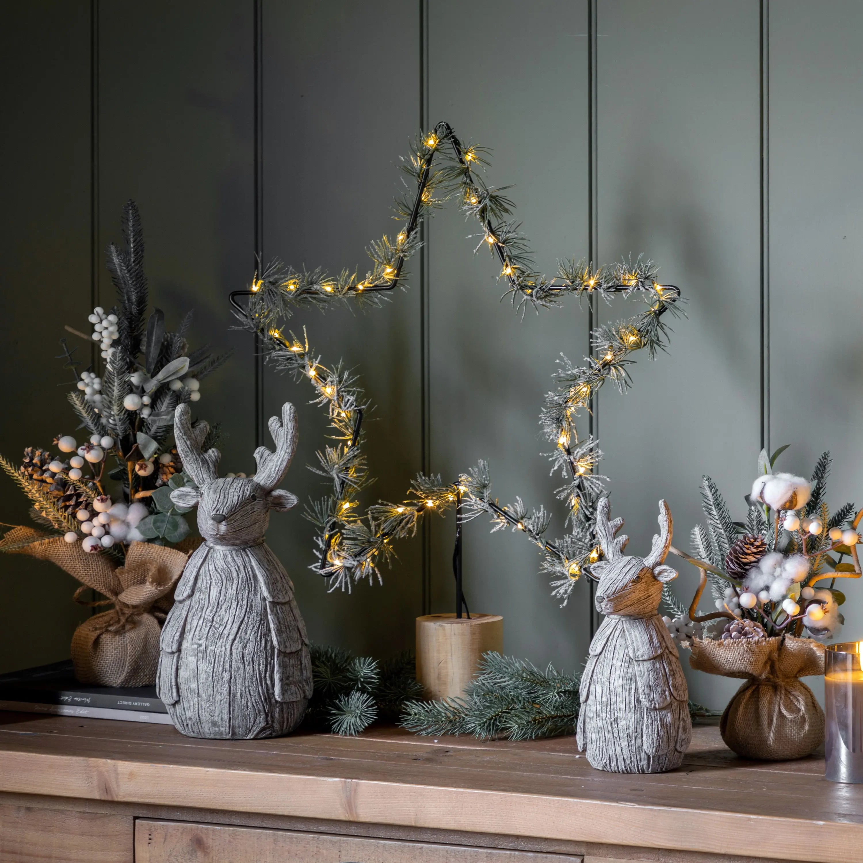 Traditional and rustic this light up star decoration will add some cosy Christmas charm to any home. With a string of LEDs and faux pine needles woven around a wirework star this charming decoration is a perfect festive addition.