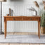The Halesowen 2 Drawer Desk from House of Isabella is a must-have for any home or office. With great attention to detail, this desk boasts a timeless and classic design. The rich warm tones of the wood are beautifully accentuated by the inlay on the top and drawer fronts, while elegant turned spindle legs add a touch of sophistication.