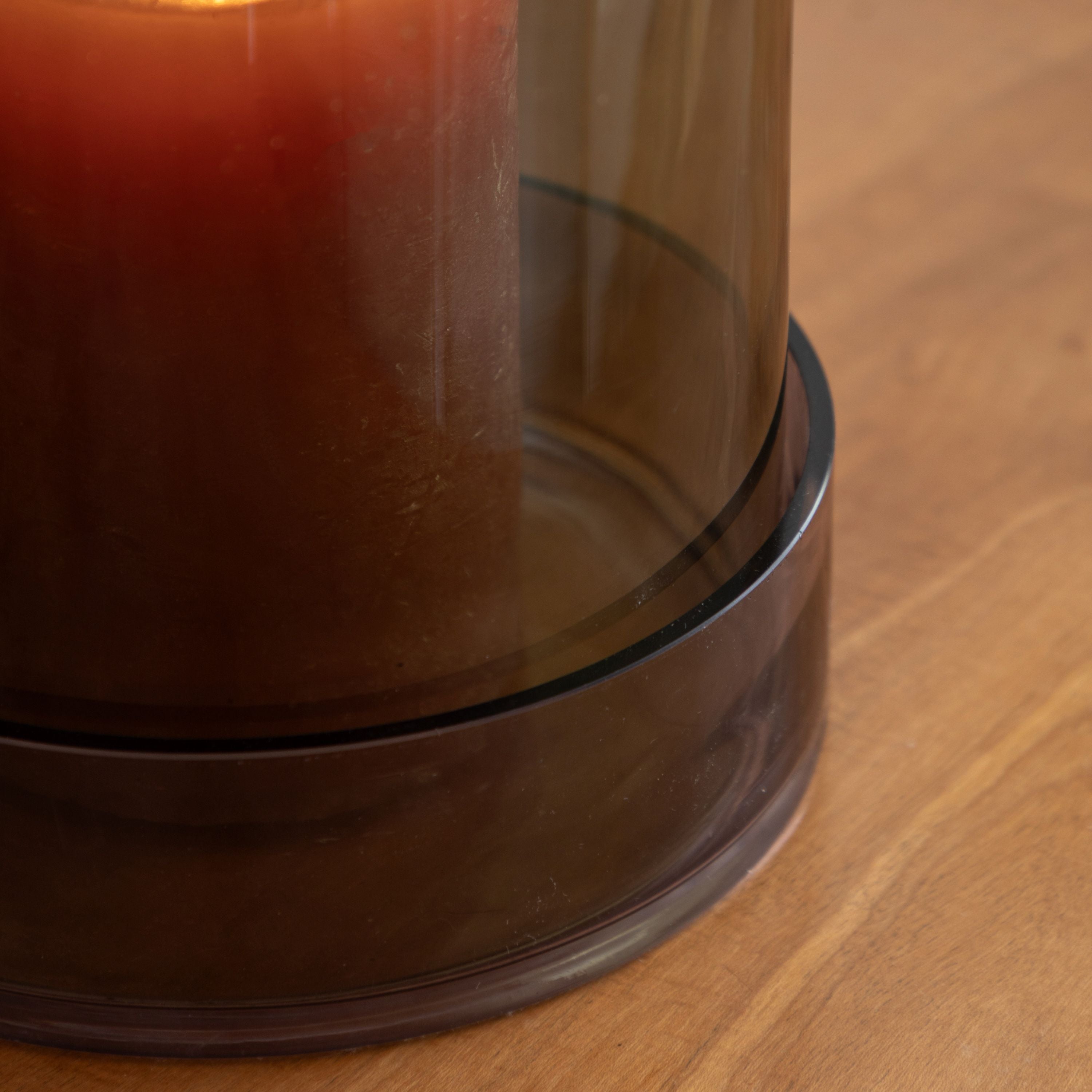 A contemporary take on a traditional hurricane lamp, the soft, smoky green glass of this sleek candle holder creates a warm and cosy glow when paired with a lit candle.