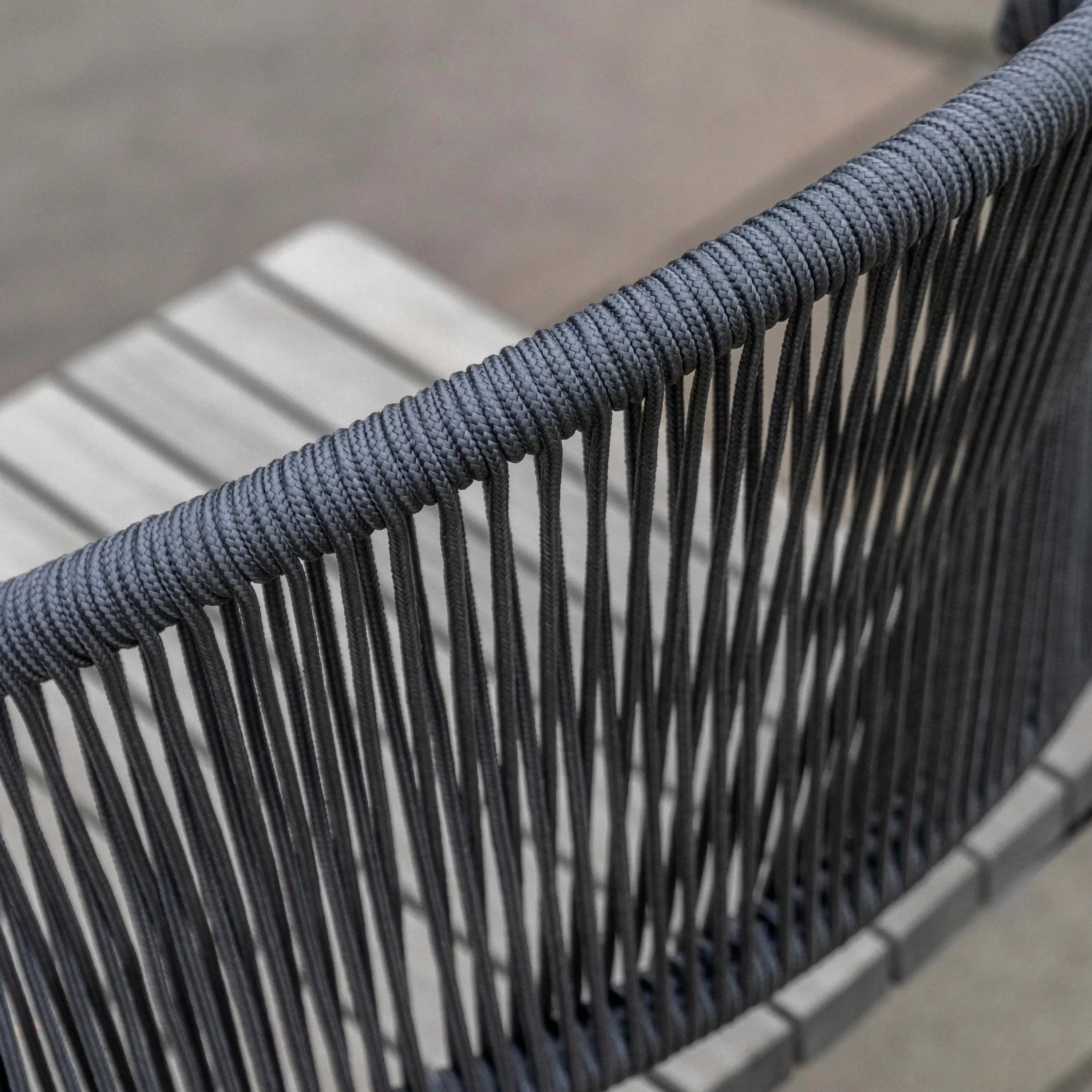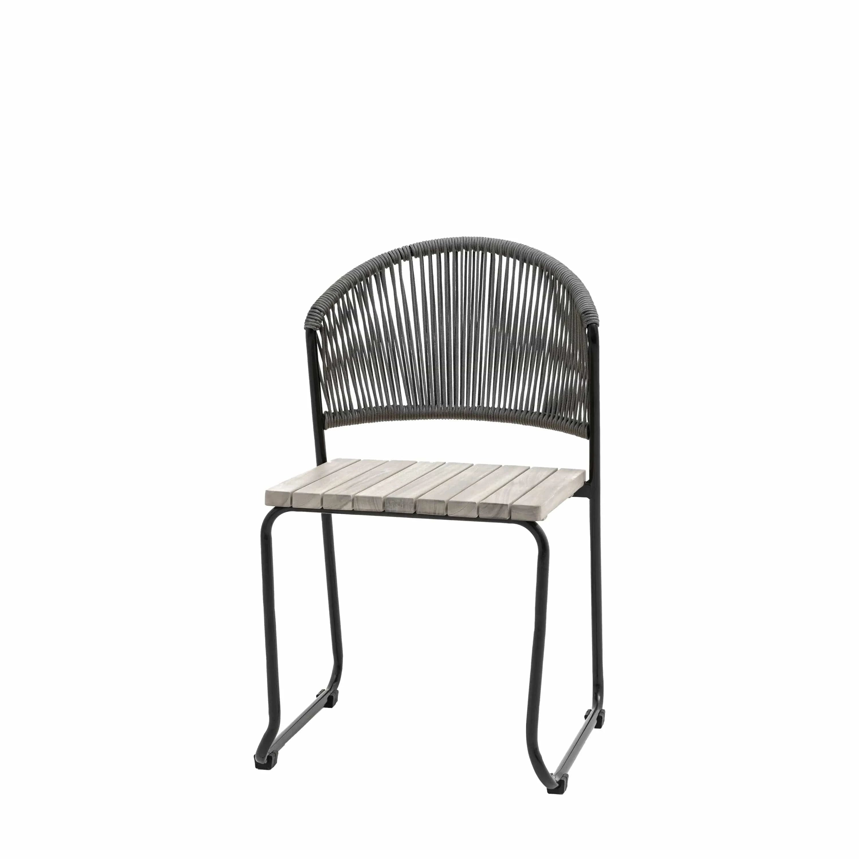 The rope back not only enhances the chair's aesthetic appeal but also provides a comfortable and breathable support. Available in black or grey, this chair is designed for outdoor use and is made with high-quality acacia material. Its dimensions are 500mm in width, 590mm in depth, and 840mm in height, making it a perfect fit for any outdoor dining table.