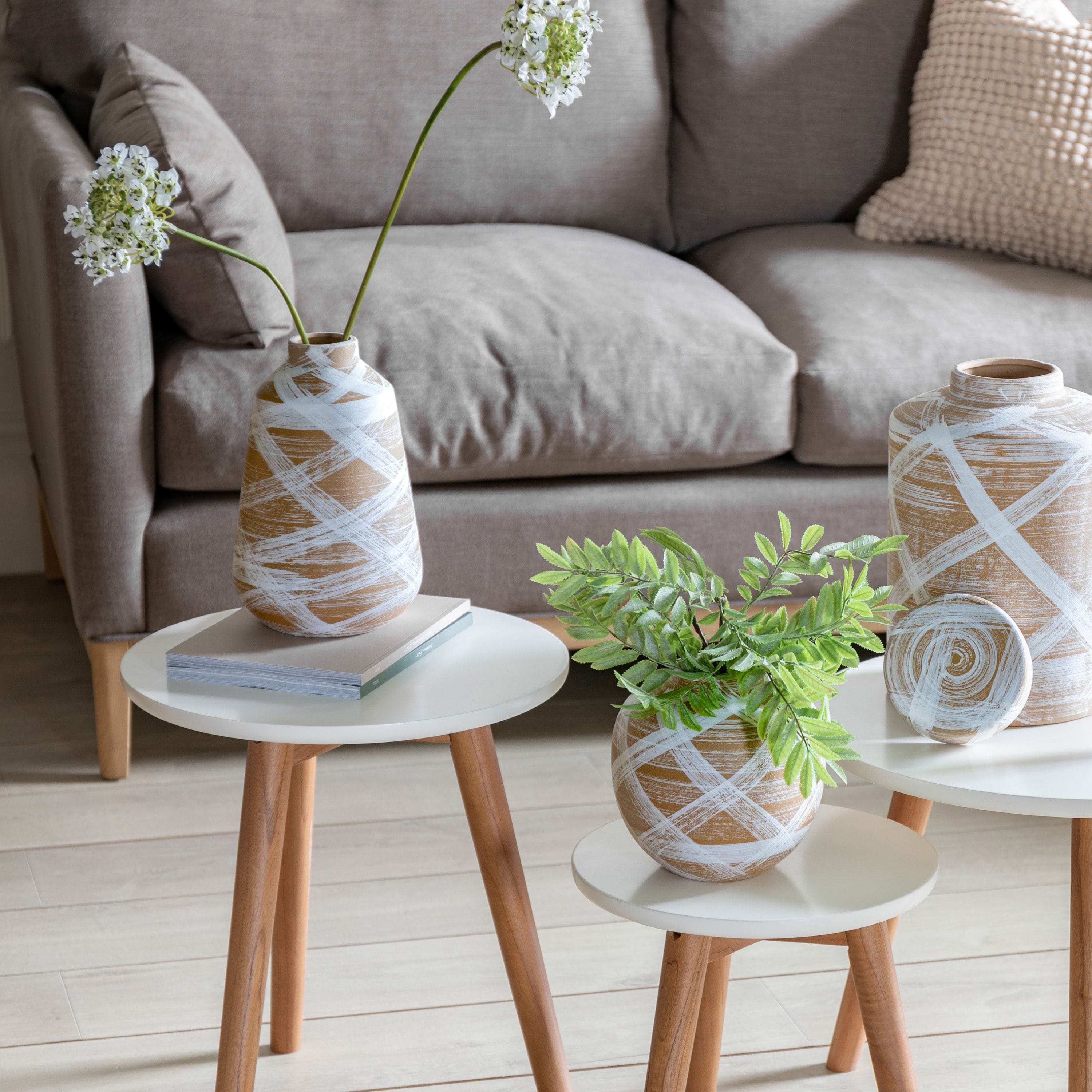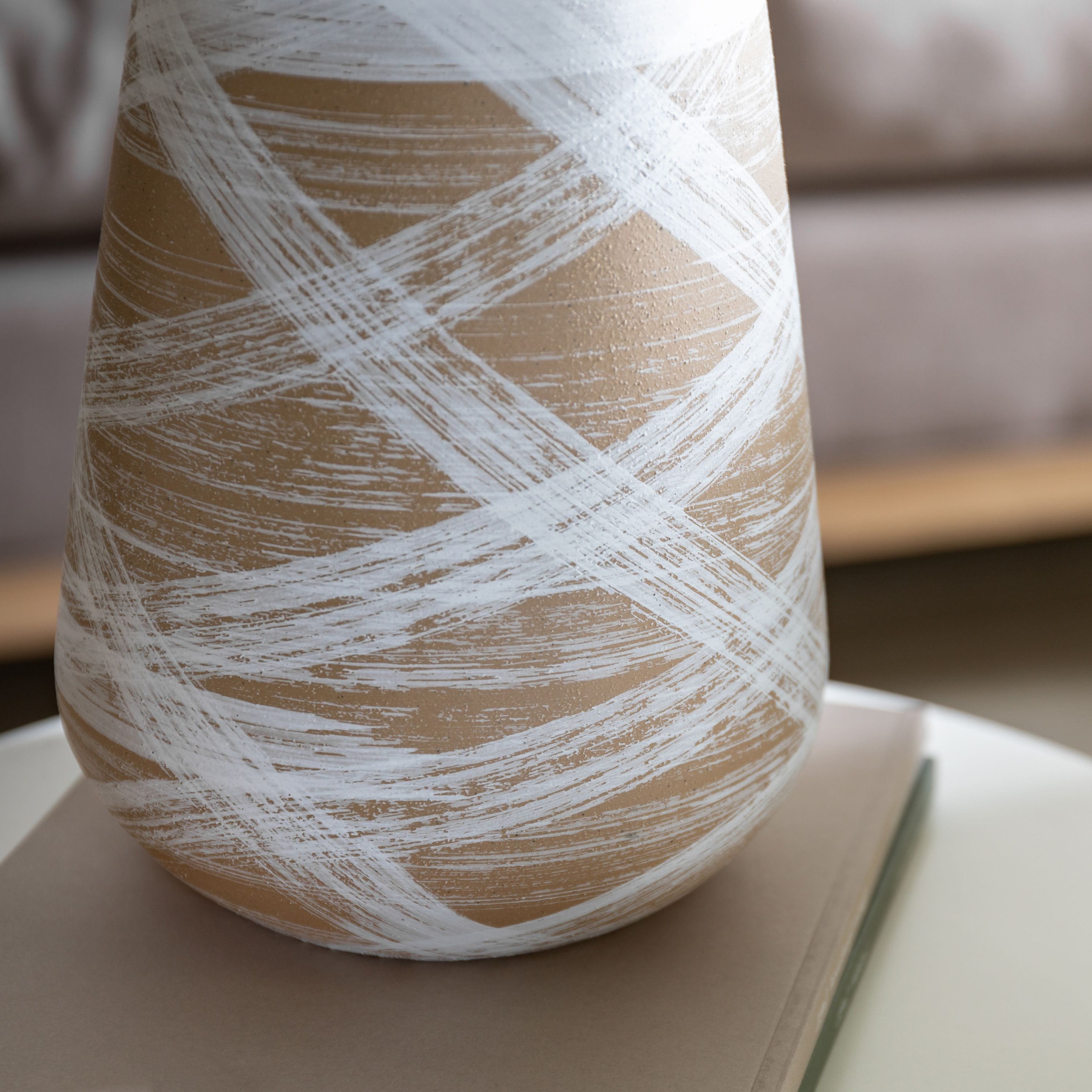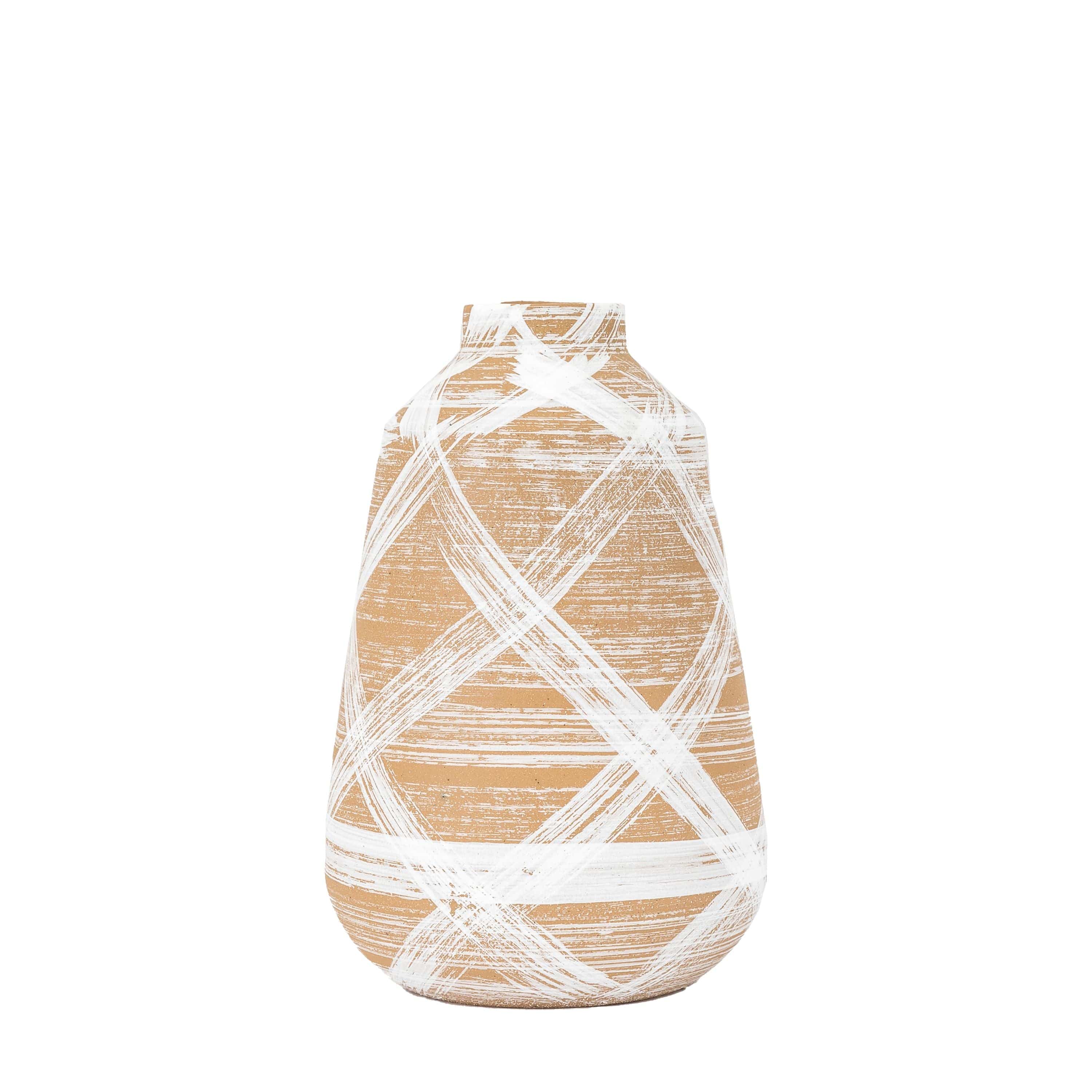 Introducing the Egypt Vase - Large, a stunning addition to any home decor. Handmade with a hand painted brushstroke style white glaze, this vase is truly one-of-a-kind. Its rustic charm is sure to bring a touch of elegance to any space. Complete the look with matching pieces also available.
