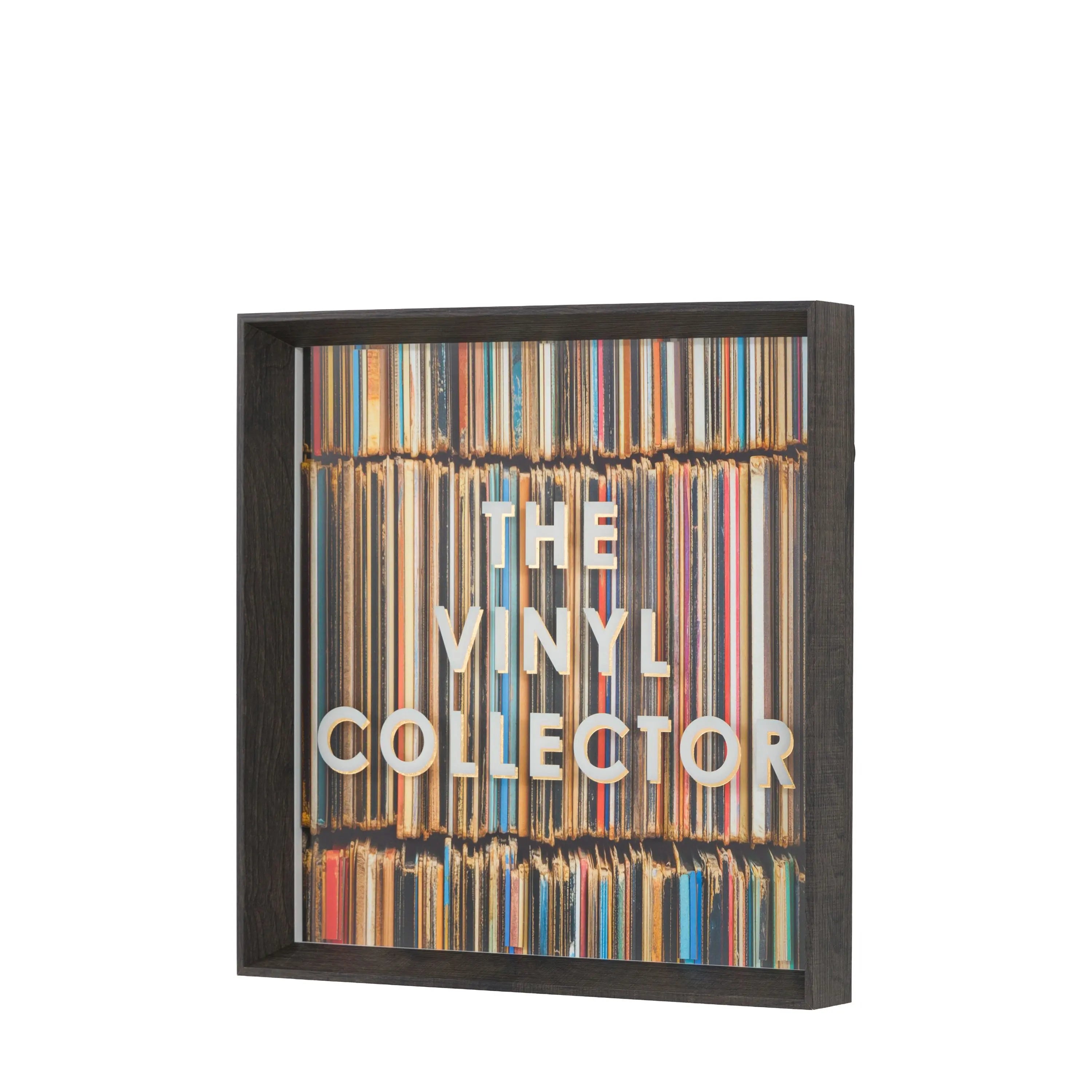 A distinctive mixed-media creation, this artwork celebrates the golden age of music through images of vintage LPs, layered and raised beneath glass. The bold typography and nostalgic subject capture the tactile beauty and timeless allure of vinyl culture.