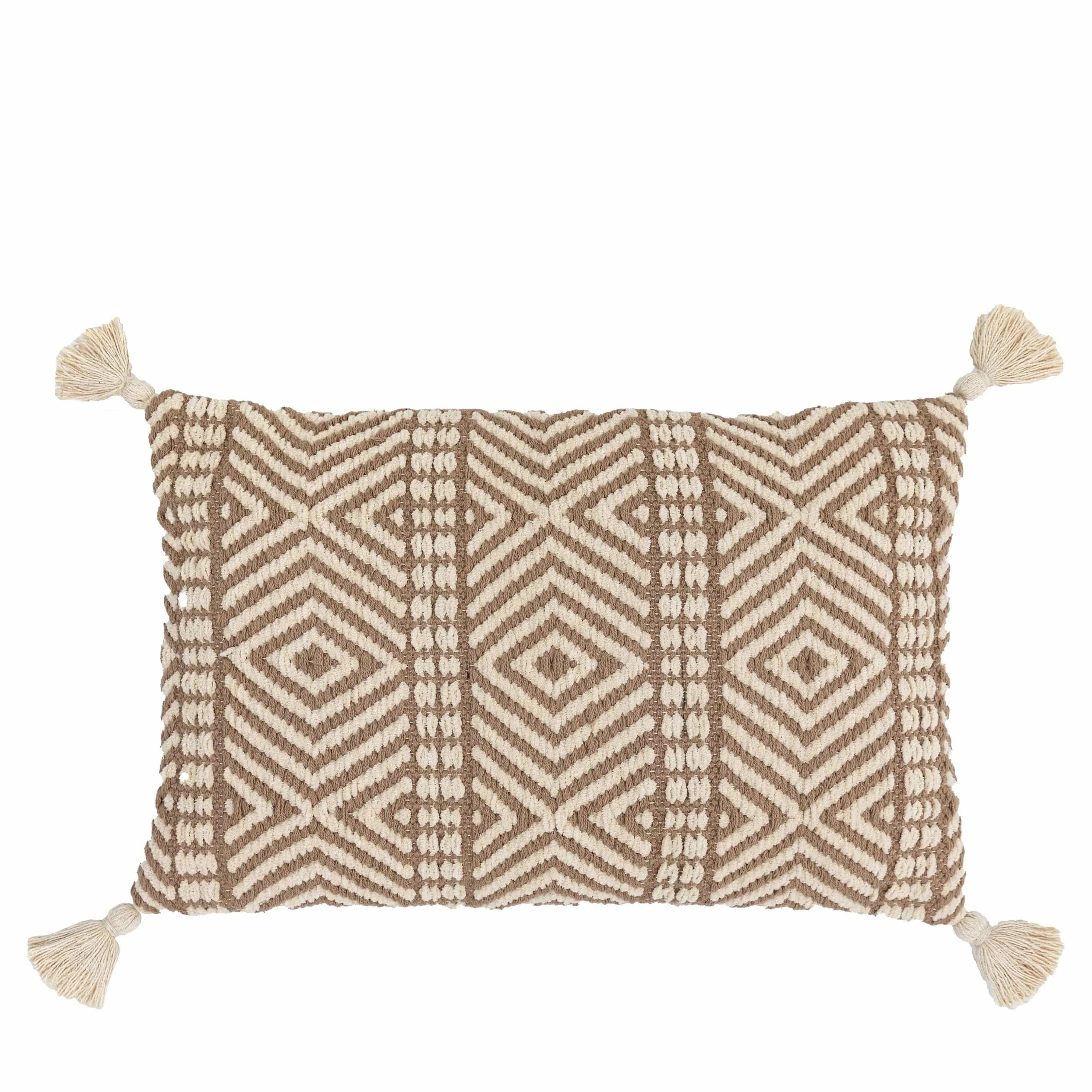 This cream-coloured cushion is made from high-quality cotton, making it perfect for indoor use. The front features a unique woven design, while the back is plain. With a front fabric weight of 2500gsm and a rear weight of 210gsm, this cushion is both comfortable and stylish.