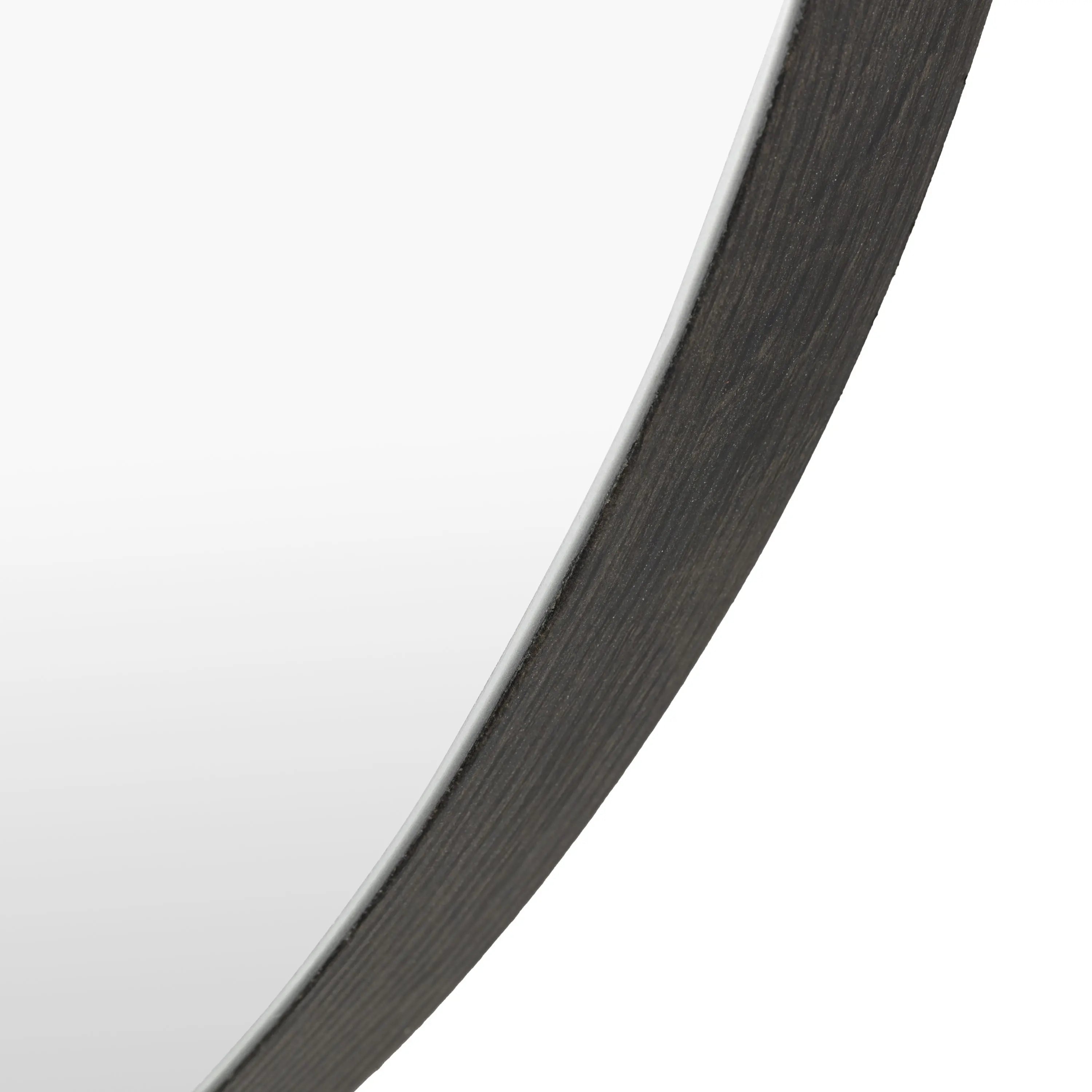 Balancing modern minimalism with refined detail, this modern round mirror is an elegant addition to contemporary interiors. The deep sides finished in black wood veneer give the mirror a strong architectural feel, while the flush front creates a clean, seamless profile.