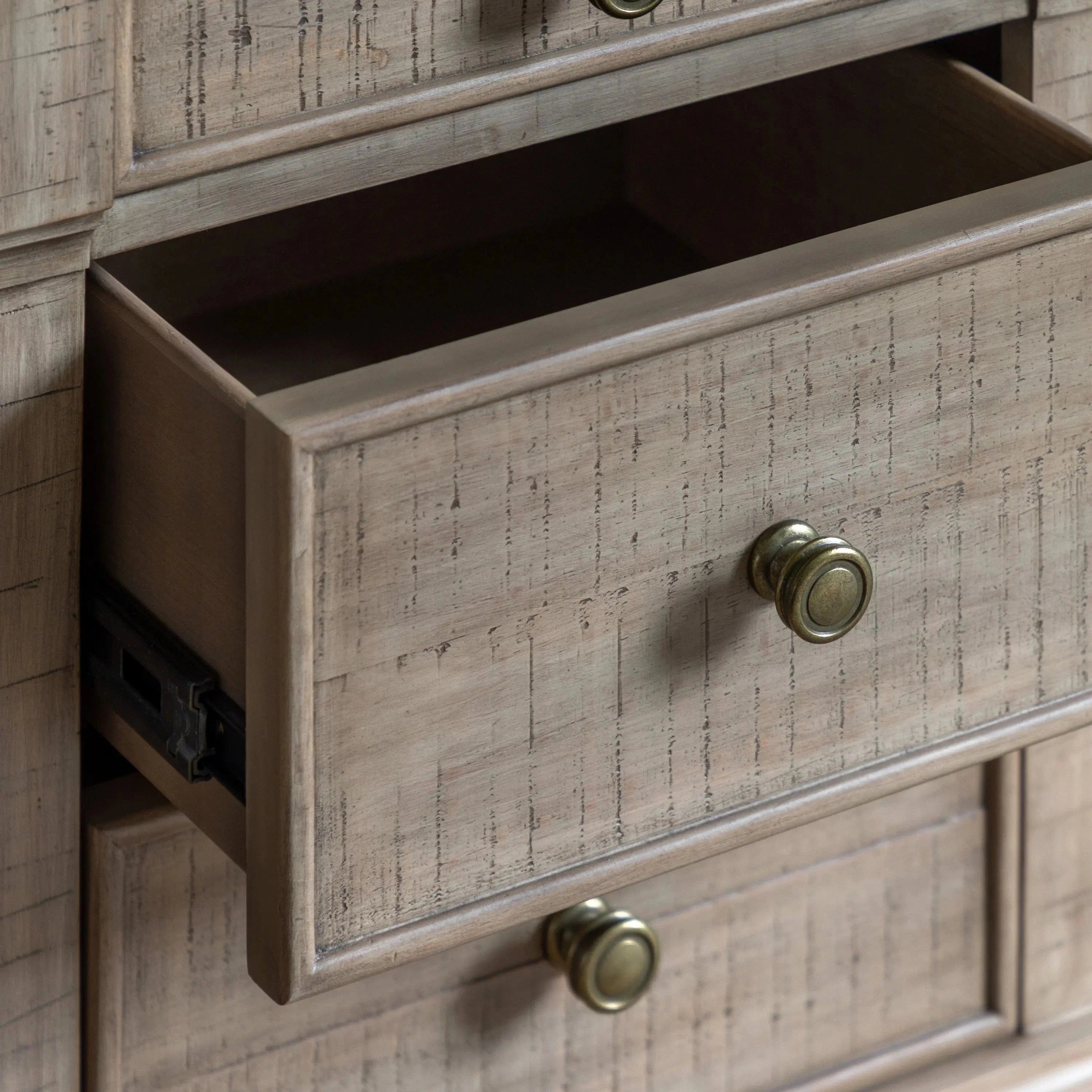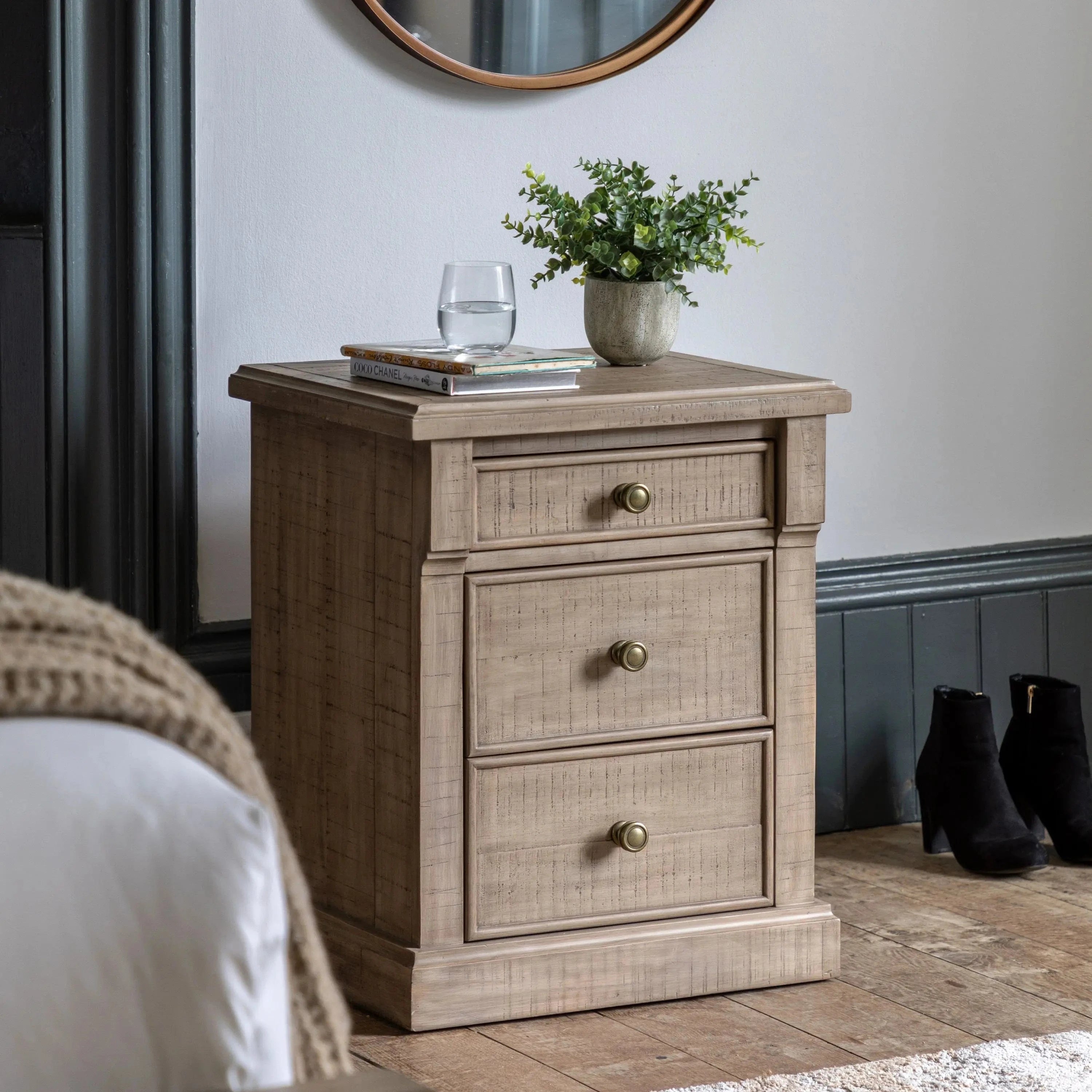 Introducing the Vanguard 3 Drawer Bedside, the perfect combination of charm and practicality for your bedroom. With its weathered wood finish and simple design, this bedside creates a warm and inviting atmosphere. But what sets it apart is its fast delivery, ensuring that you can enjoy this piece in your home in no time.