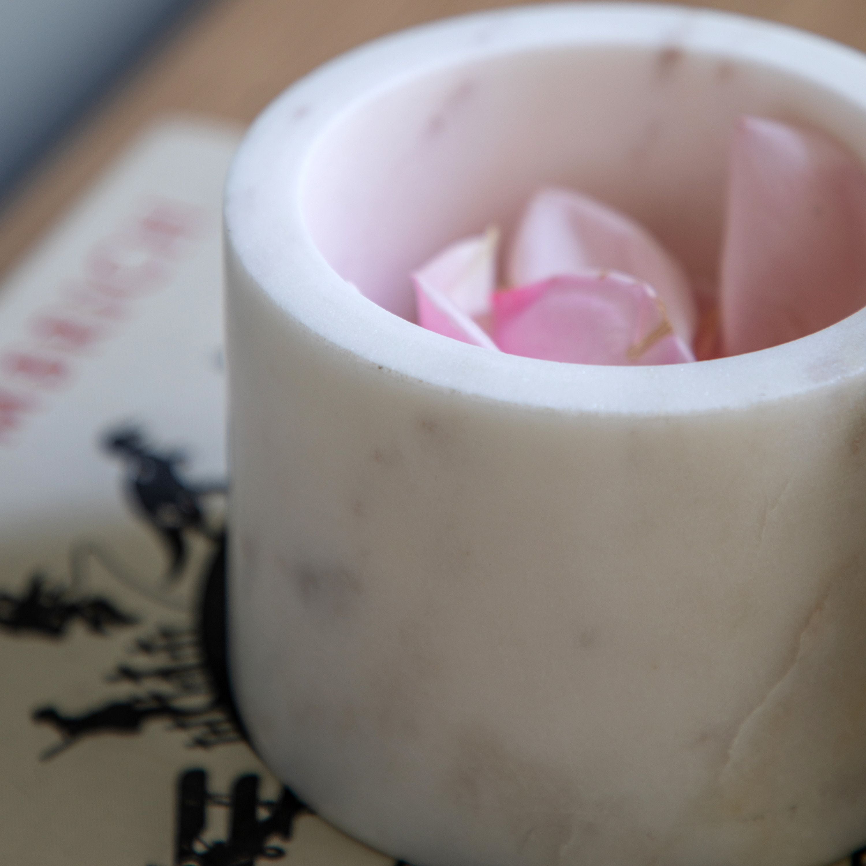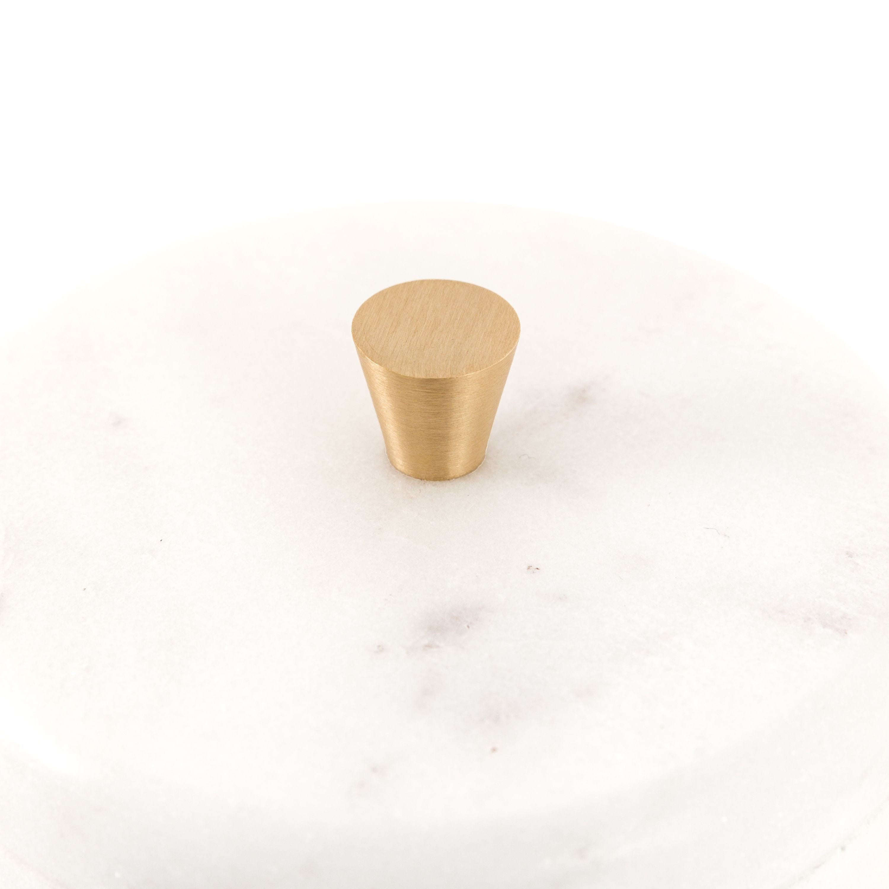 Just right for bathrooms or elegant dressing tables, this chic little trinket box is hand carved from stunning white marble and is finished off with a brushed brass handle.