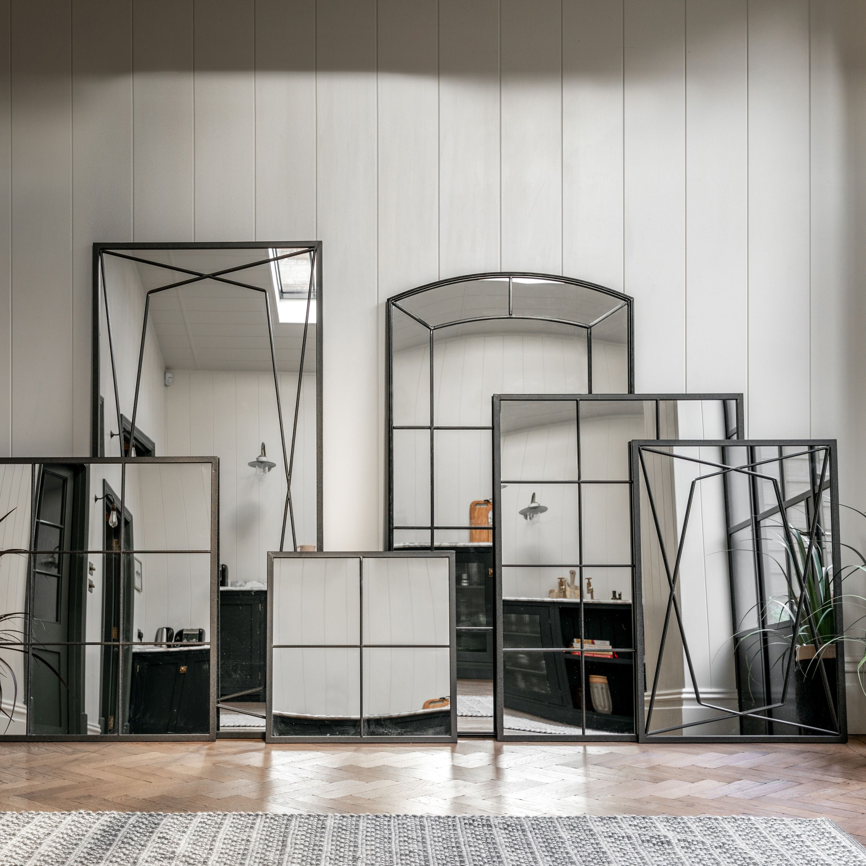 Introducing the Wainscott Leaner Mirror Black, a stylish and modern addition to any home. With its geometric style framework, this mirror will add a contemporary touch to your living space. But what sets this mirror apart is its fast delivery, ensuring that you can enjoy your new piece of furniture in no time.
