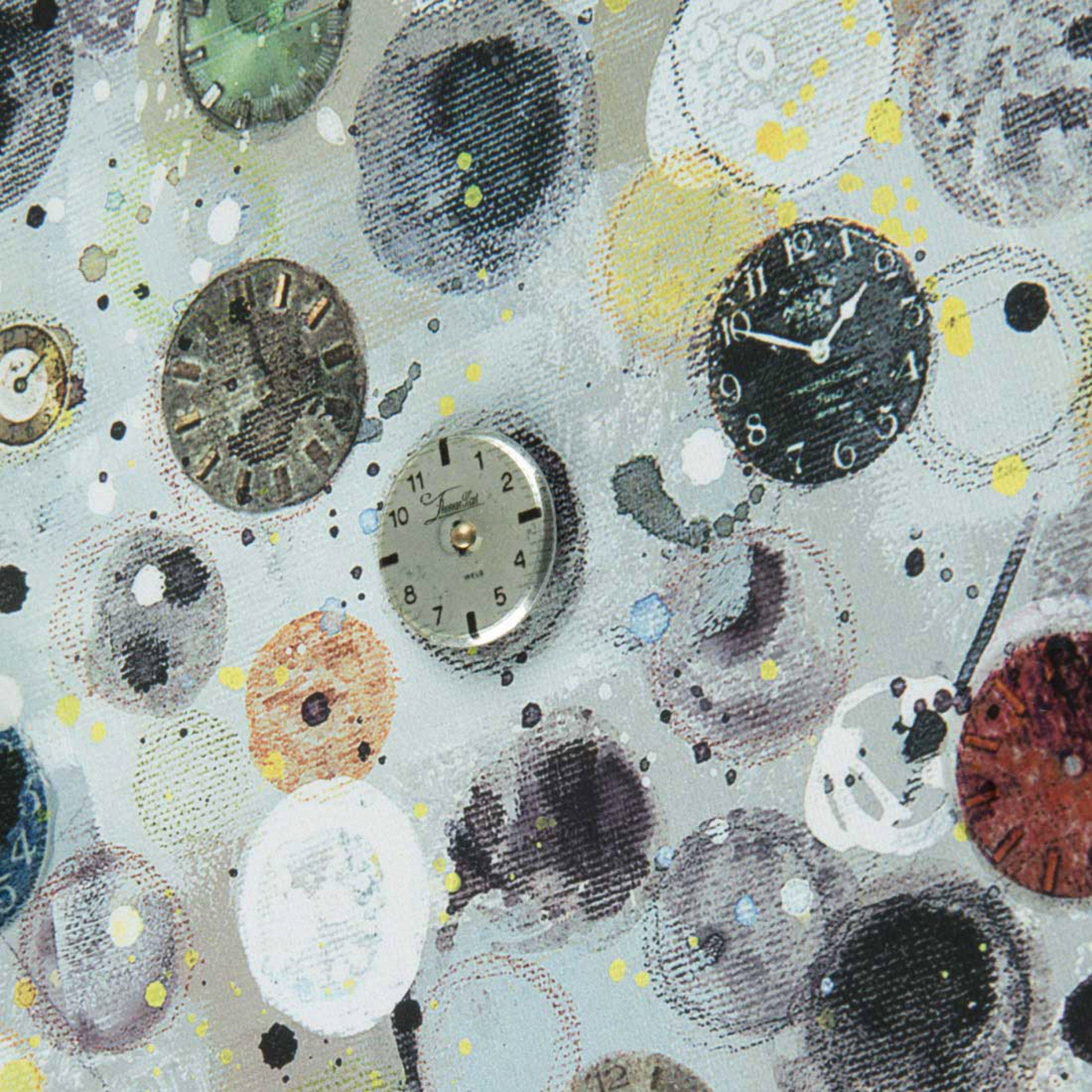 What you might call the Pocket Watch Tree, this is a smaller rendering of Ulyana Hammond's contemporary classic with its unique embellishment using raised vintage-style watch faces. Embellished with raised vintage-style watch faces, framed and unglazed.