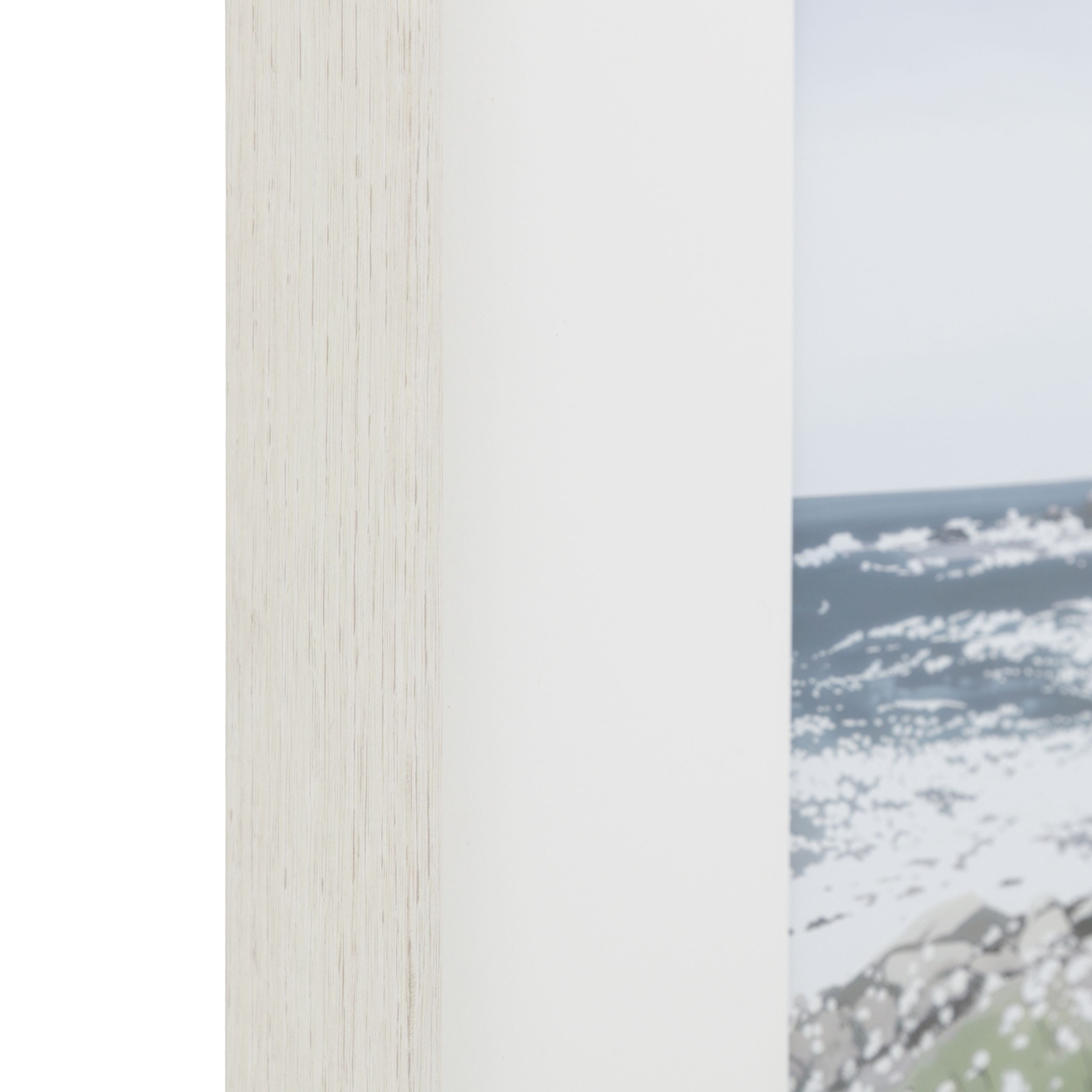 A striking seaside scene depicting a coastal hillside covered in wildflowers. The detailed textures and soft tonal contrasts evoke calm and natural beauty. Framed in a white-washed oak finish, this piece combines modern simplicity with organic charm, making it an elegant addition to both contemporary and nature inspired interiors.