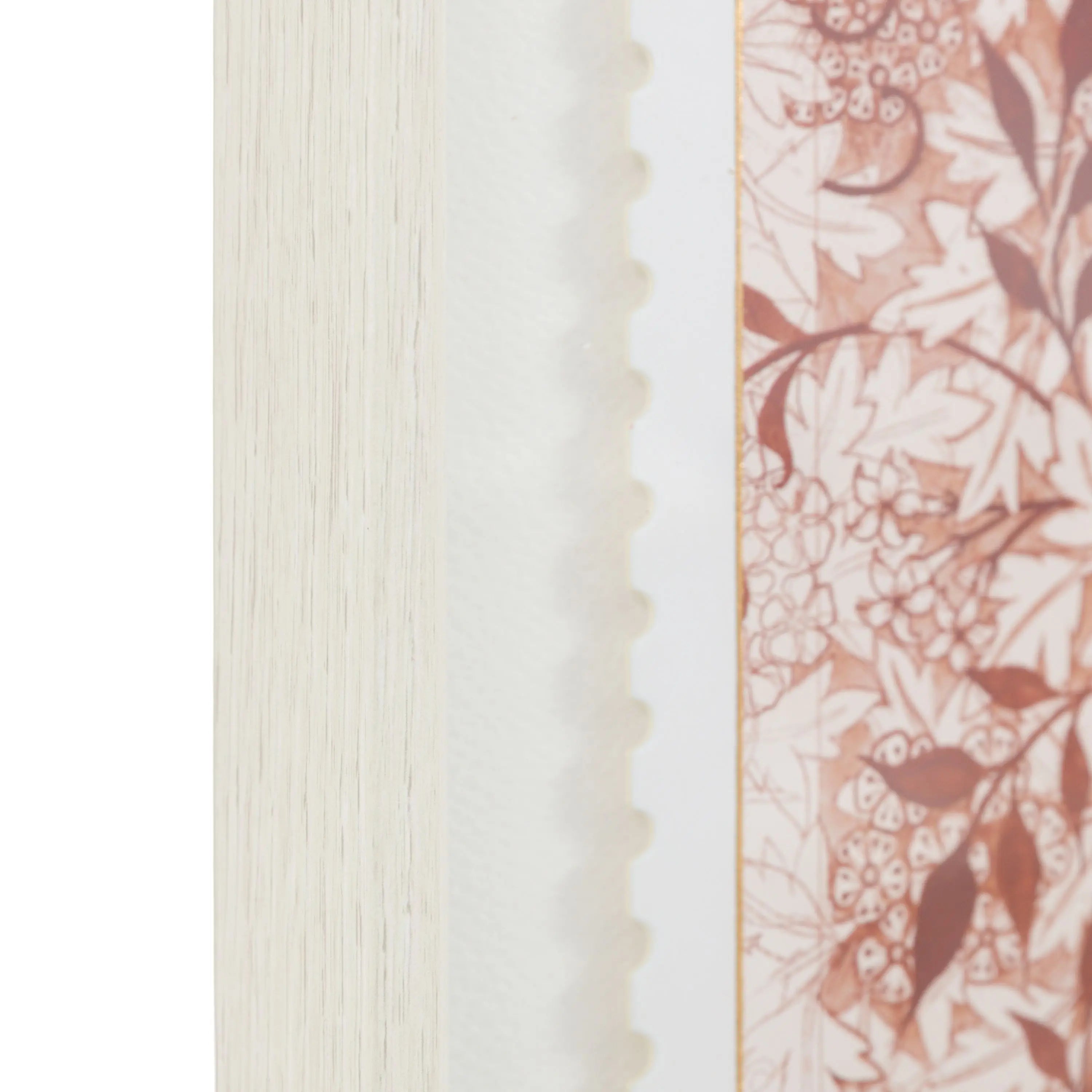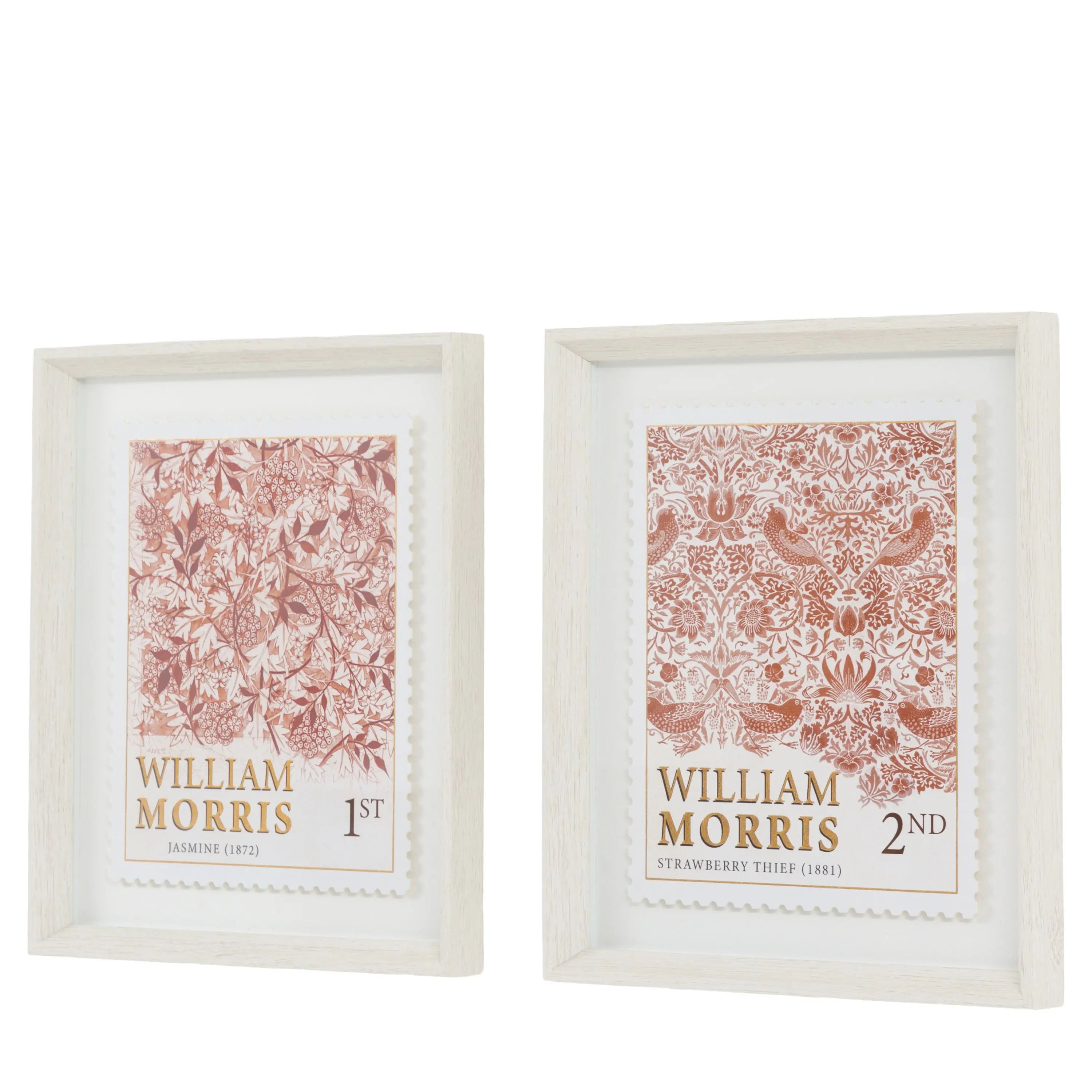 This elegant pair of shadow box artworks celebrates two of William Morris's most beloved designs, Jasmine 1872 & Strawberry Thief 1881, reimagined as exquisite die-cut stamps. Each piece is die cut with perforated edges, raised to create depth and dimension. The typography has been embellished with gold metal leaf for the perfect finishing touch.