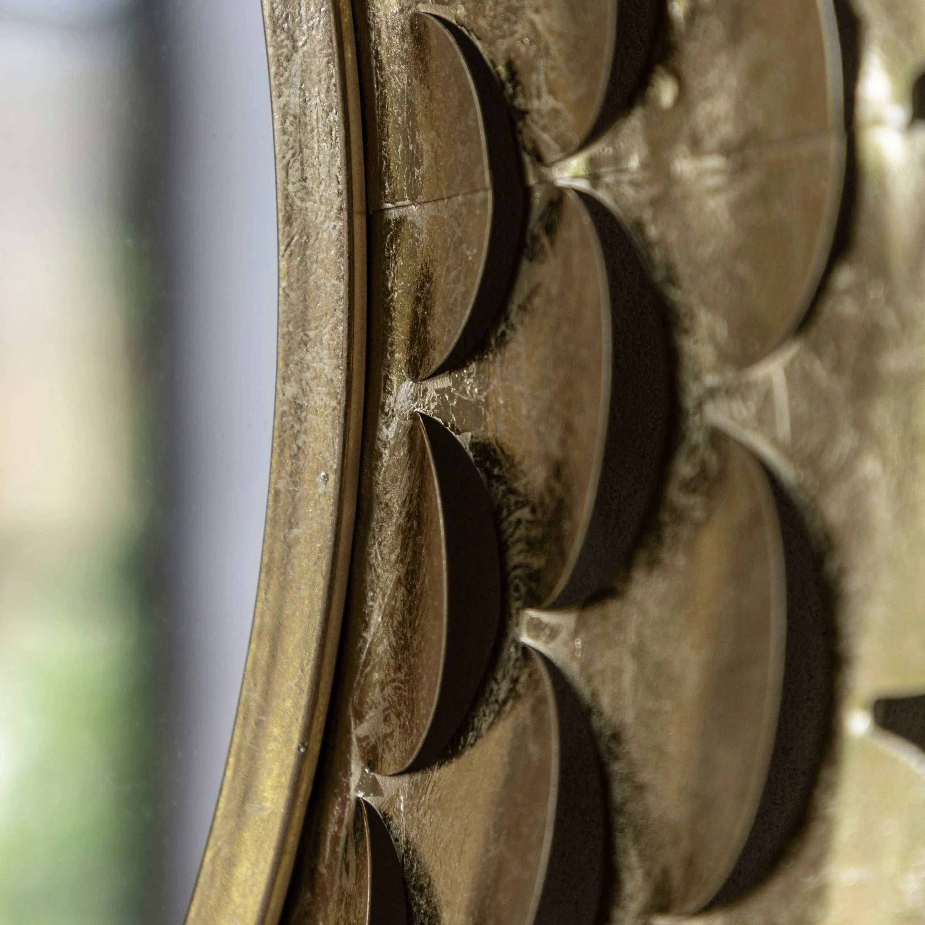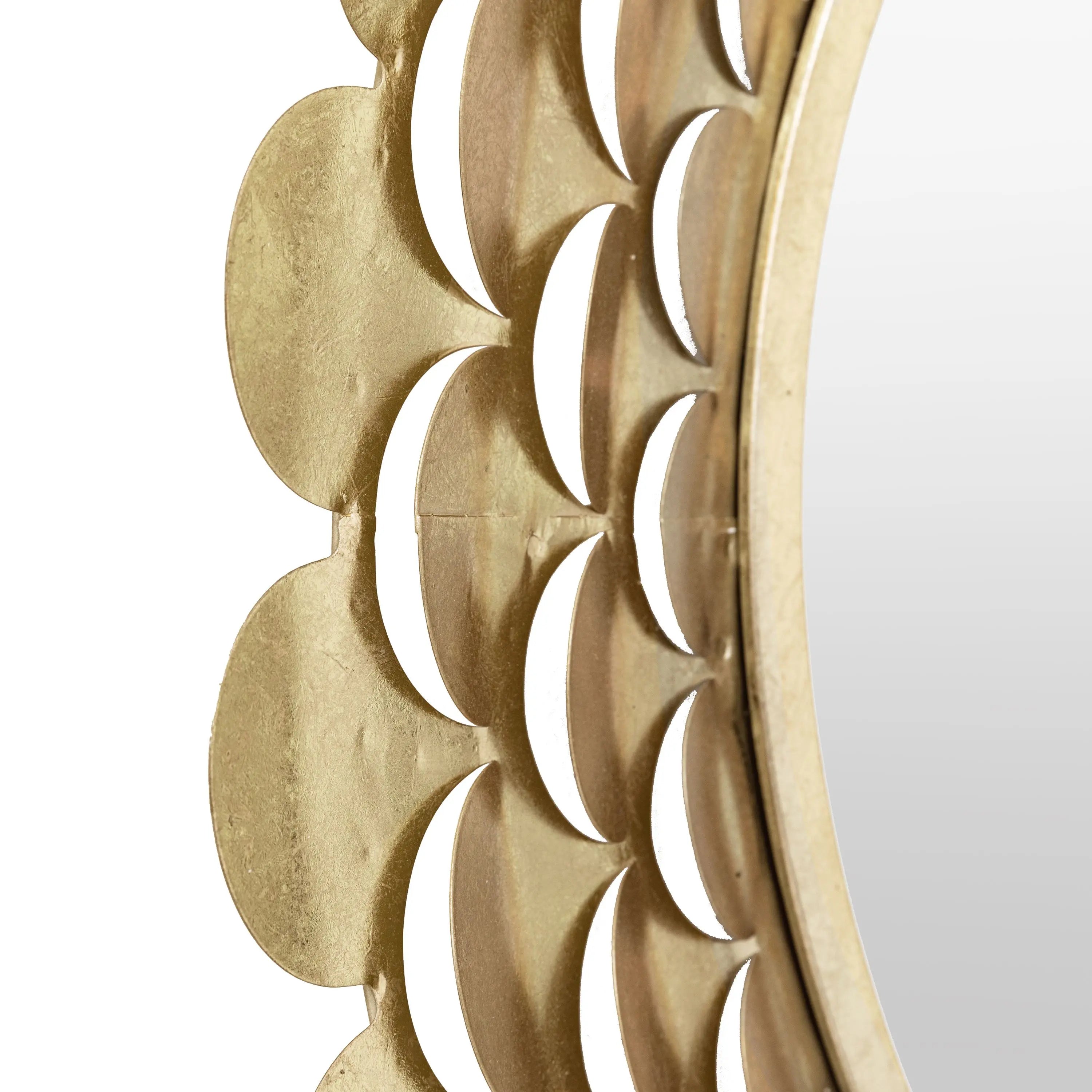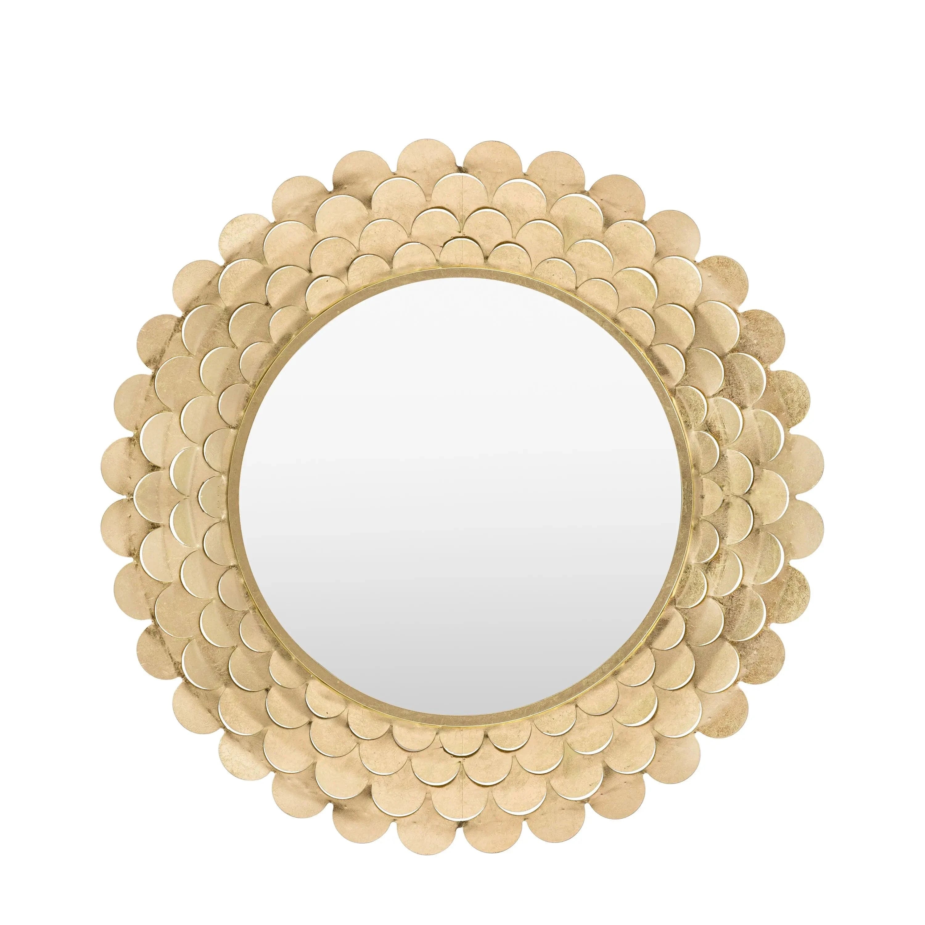 Perfect for enhancing your living room, bedroom, or entryway, this mirror is not just a functional piece but a statement of style. Embrace the charm of this opulent design and let it become the focal point of your decor. Transform your space with the timeless beauty of our mirror gold round mirror with scallop cutoutsÔÇöwhere elegance meets innovation.
