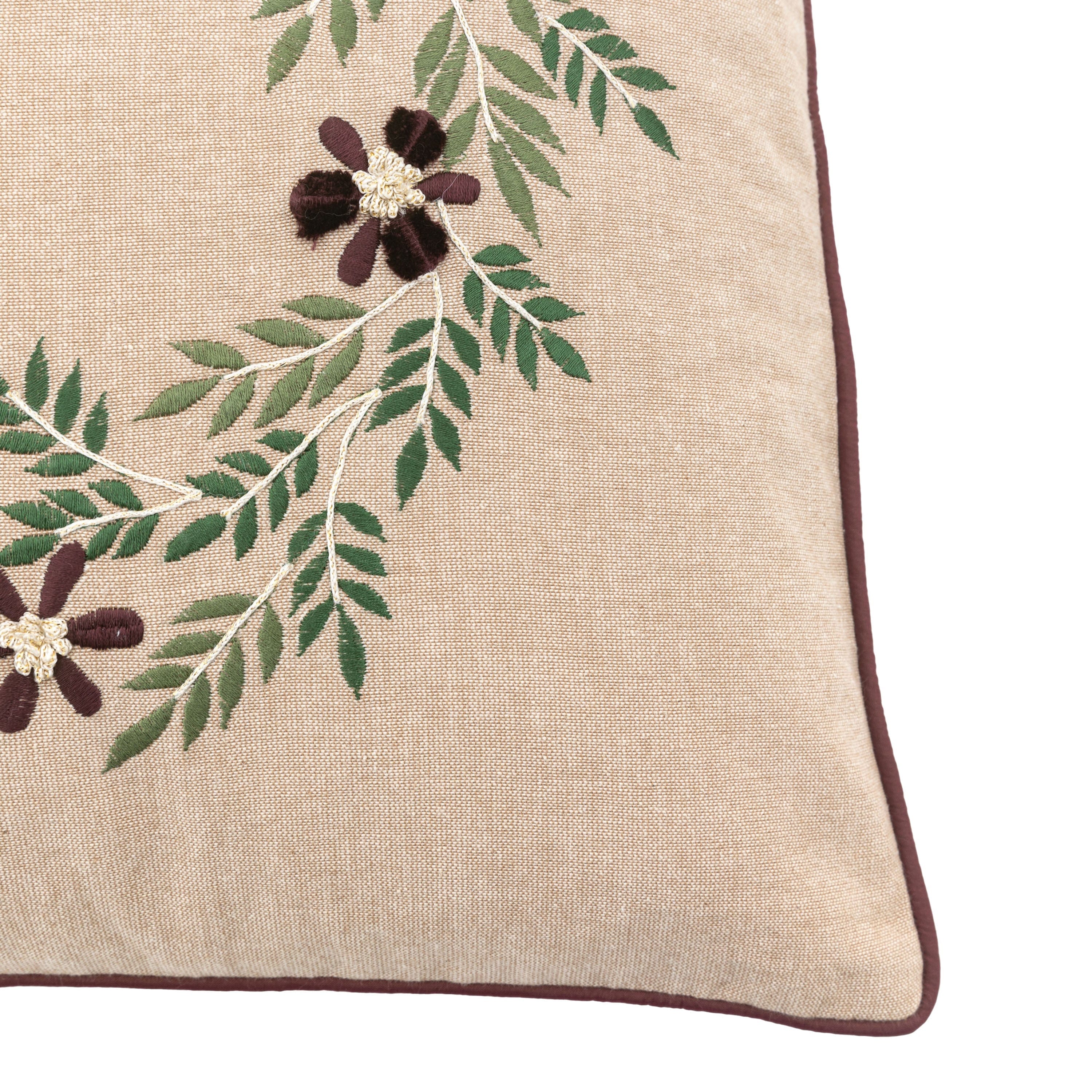 Scattered with detailed embroidered and appliqued festive foliage on a soft linen backdrop, you can have the merriest and cosiest Christmas with this festive cushion.
