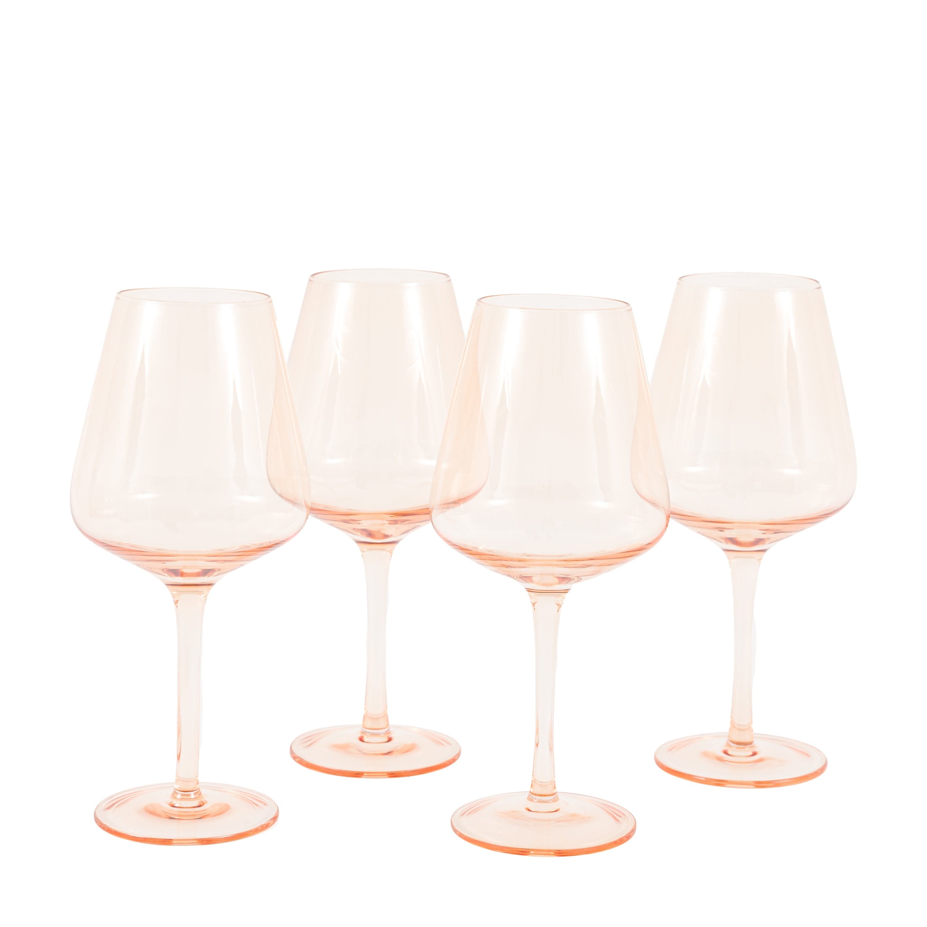 In smokey green glass this elegant set of 4 wine glasses features slender stems and angled bowls, creating a sophisticated glass perfect for enjoying a glass of wine in style.