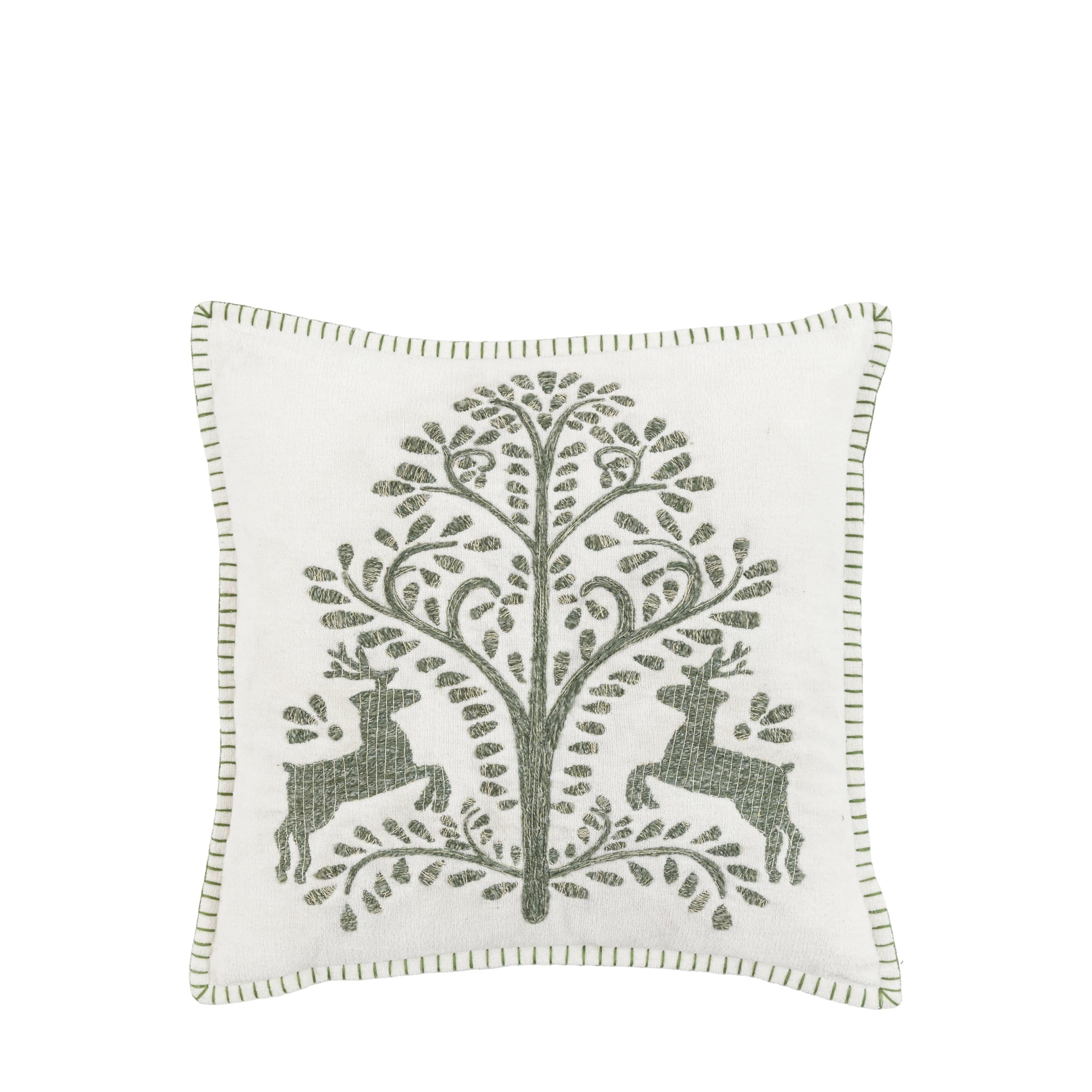 Give your Christmas a bit of folksy charm with this festive cushion. Detailed with metallic embroidery for a hint of shimmer, the cushion is finished off with a contrasting blanket stitch edge.
