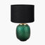 This timeless glass table lamp features a unique cold-cut honeycomb glass design with a modern look. The green hue of the table lamp base adds a subtle colour accent to any room and is complemented perfectly with a modern linen cylinder black lamp shade.