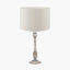 Add a little rustic charm to your room with our beautiful Captiva mango wood table lamp that has been lovingly handcrafted in India. The table lamp base showcases elegant, turned wood styling and is finished in a grey wash. The base looks wonderful with the white, textured boucle lamp shade, which is lined with a matching cotton mix material.