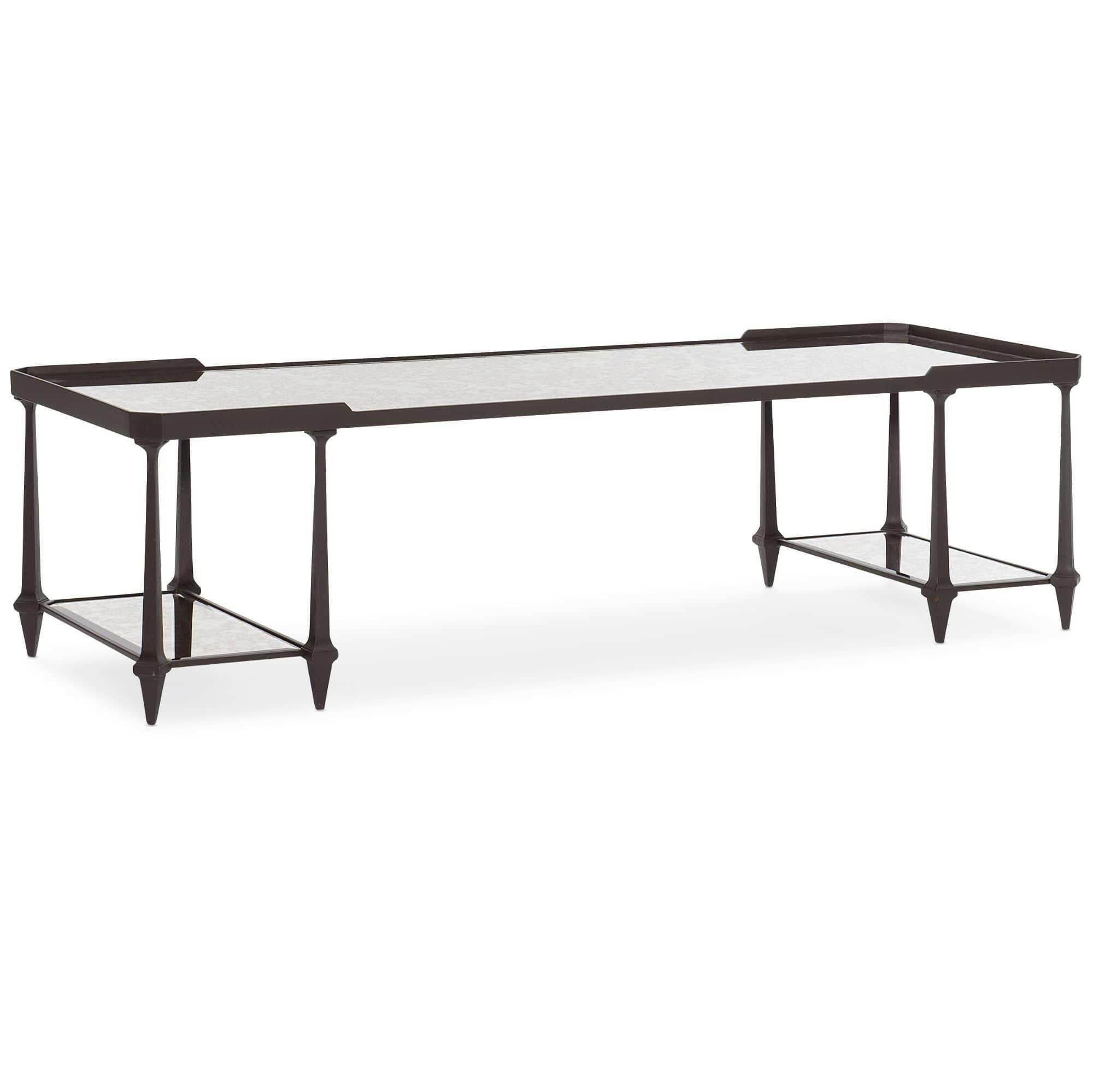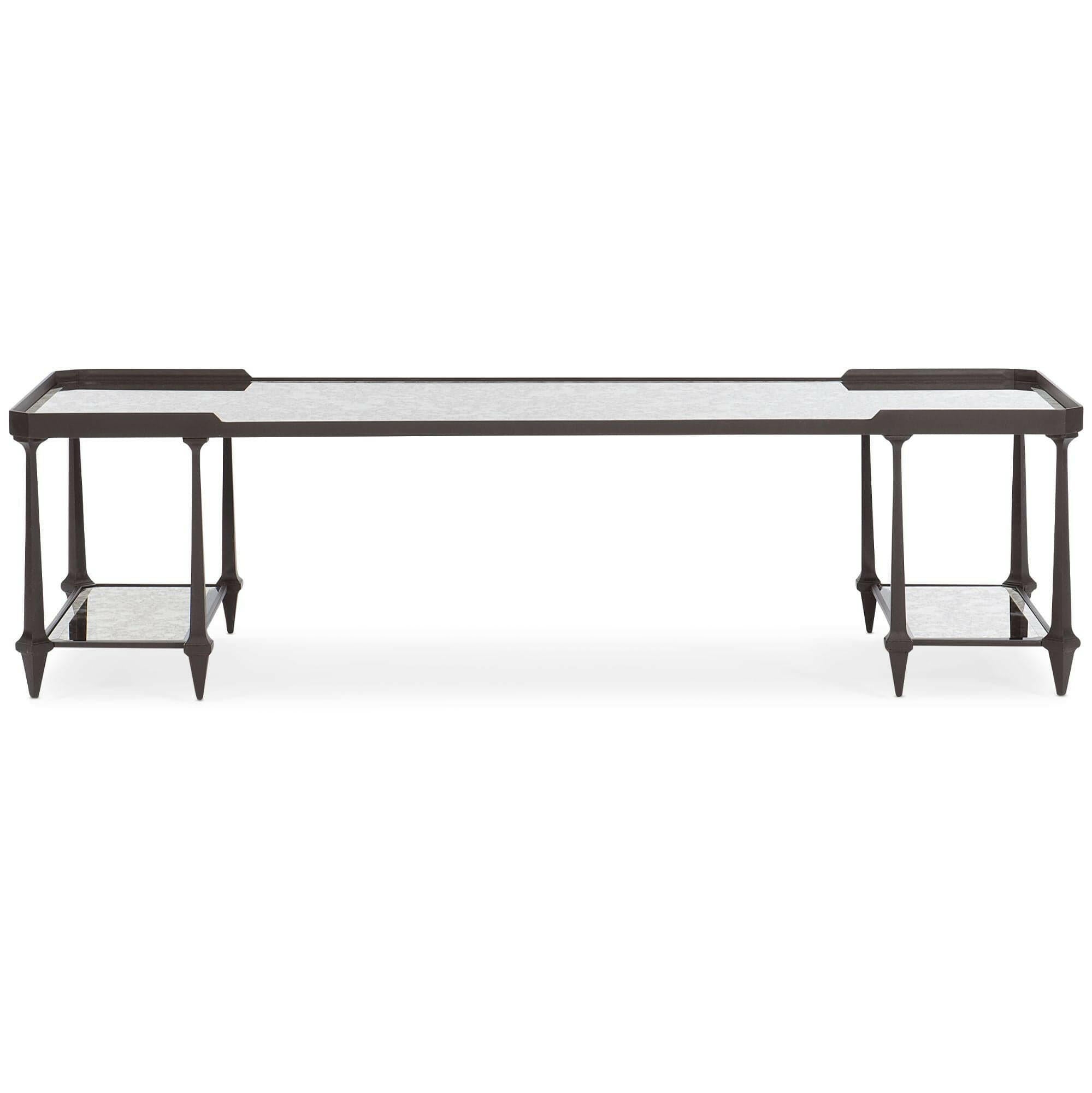 The Be All Coffee Table from House of Isabella is a true statement piece that will elevate any living space. Its substantial proportions provide balance to large seating areas, while the open design and natural reflectivity keep it feeling light and airy. The textured metal frame in Chocolate Bronze adds a touch of sophistication, while the antique-mirror top and two lower mirrored shelves add a touch of glamour. Measuring 167.6 x 57.1 x 44.4, this coffee table is the perfect combination of fashion and function. Don't be surprised when everyone asks you where you got this fabulous table from. Shop now and enjoy free UK delivery on all orders.