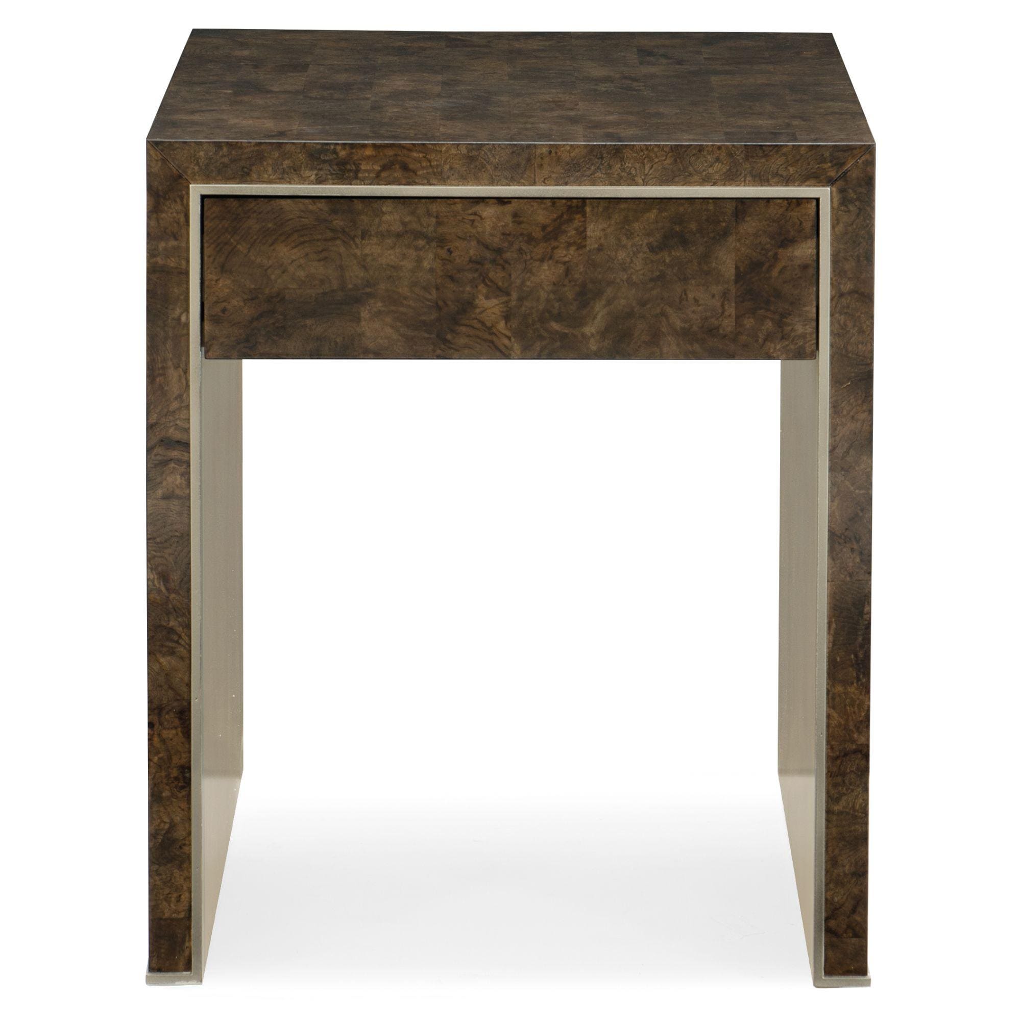 Quite definitely a show-stealer, this smart table combines rich finishes to masterful effect. Its dazzling design features a distinctive pattern of randomly matched European Oak Burl in a rich Galway finish. Warm Golden Blonde Leaf highlights the inside of its end panels and edge moulding creating dramatic contrast. Its one soft-close drawer features a Chocolate Spice finish. You’re not dreaming, it really is this exceptionally designed.Top, ends, drawer fronts and back panel are random matched European Oak Burl finished in Galway Burl.Inside end panels and edge moulding finished in Golden Blonde Leaf.One drawer with soft-close side guides and finger pull.Drawer interior in Chocolate Spice.