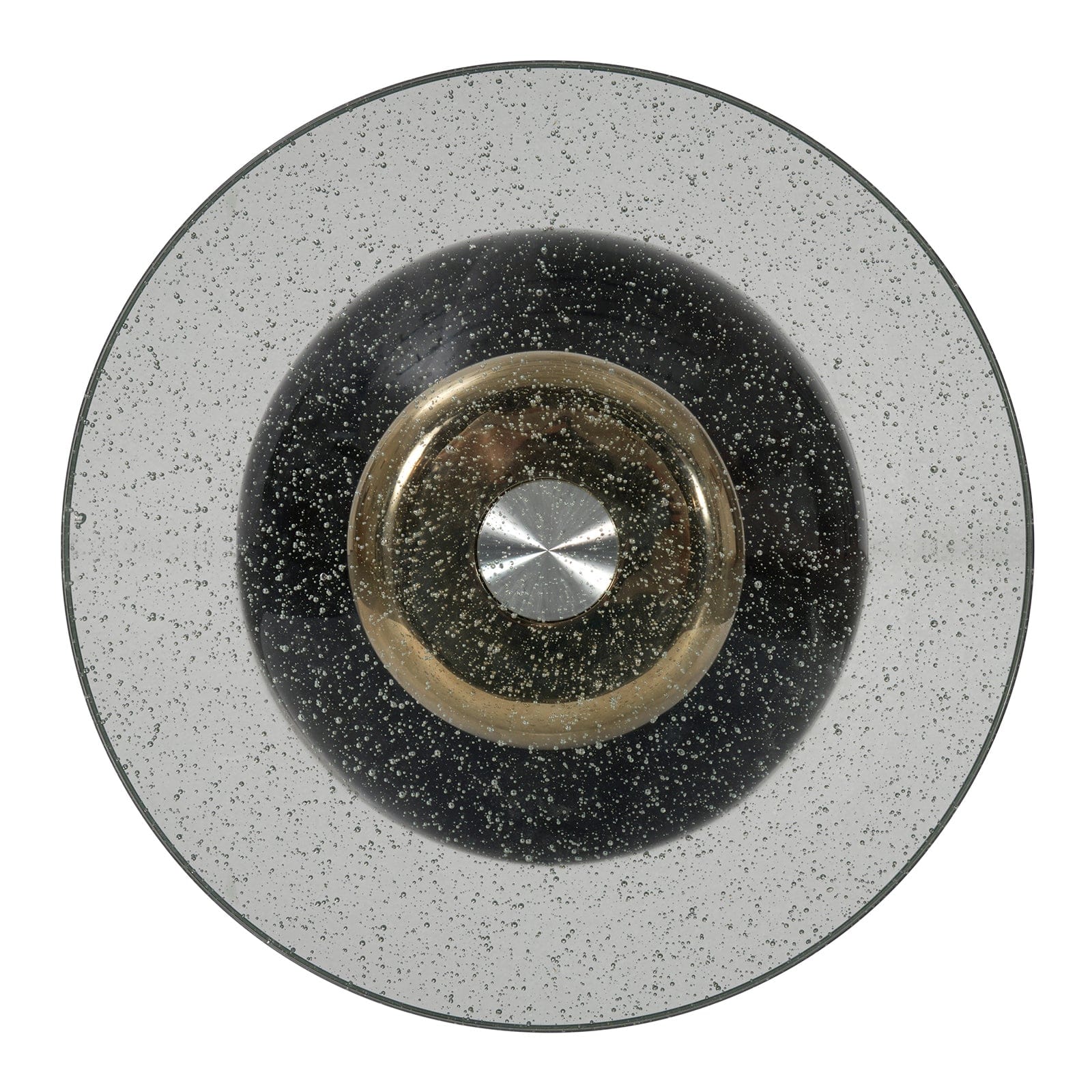Gelee Accent Table in ChocolateThis striking Gelée Accent Table is rich with elegant features. Its top is a substantial piece of clear seeded glass with embedded bubbles that create a wavy, organic pattern. Its contemporized drum-shaped pedestal has been dressed in a high-sheen Chocolate Truffle gloss finish with Whisper of Gold accents and bands. Its base has a padded bottom to prevent the table from sliding.FEATURES:Seeded Glass topPedestal finished in Chocolate Truffle.Metal bands in Whisper of Gold.Padded bottom to prevent table from sliding.Caracole ClassicTaking the classics of furniture design and pairing with unique materials and refined finishes, this portfolio was born of our vision to create high-style furniture with a personality of elegance and individuality. Bring a breath of fresh air to interiors with distinctive pieces for every room of the home, while blurring the lines between classical styling and modern taste. These playfully named pieces address whole room environments through an eclectic lifestyle approach, instilling a scheme with versatile furniture that are sophisticated, creative and classy in equal measure.