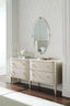 But it's not just about looks, this dresser also offers ample storage space with four drawers and undermount guides. The top right drawer even features a divided jewelry tray, felt lined in Caracole Cream. The drawer interiors are also finished in Soft Silver Paint, adding to the overall luxurious feel of this piece.