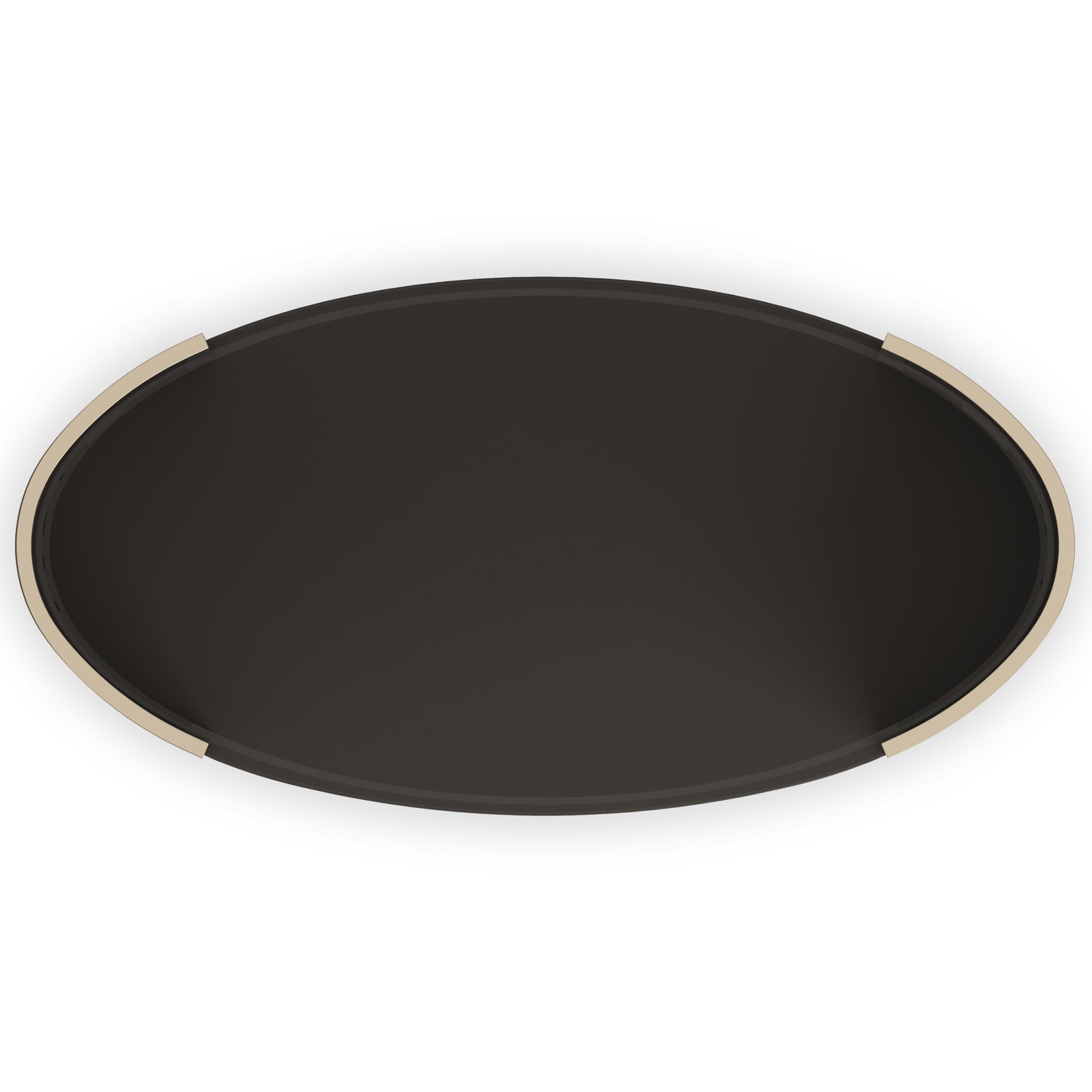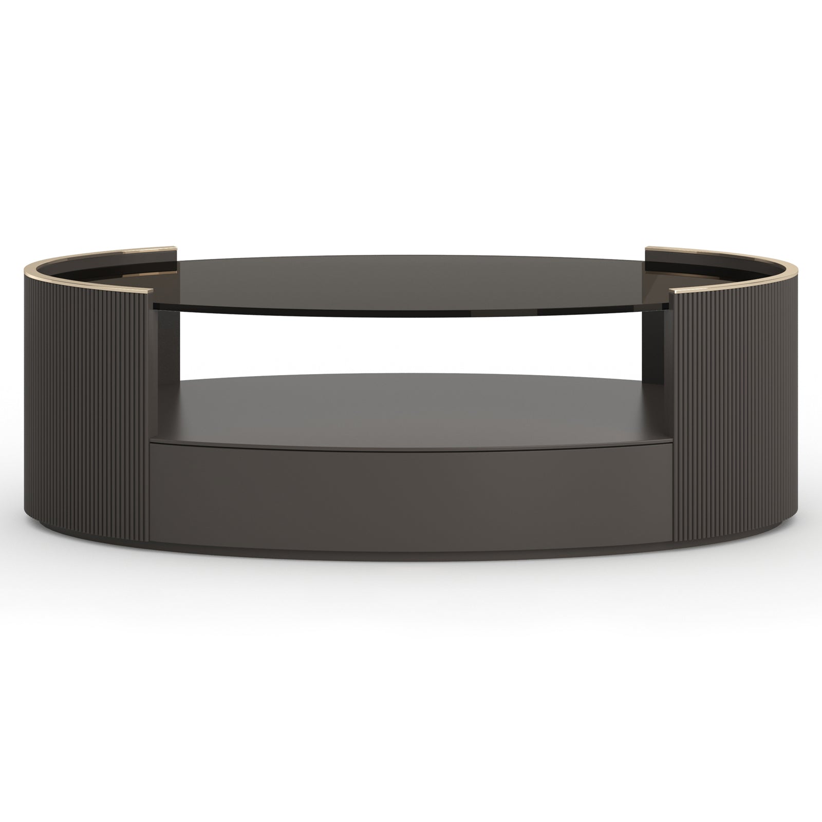 Love Oval Coffee Table in Dark ChocolateGather around this oval cocktail table. This piece has a smoked bronze glass top and half-moon casework at the end of each oval that displays fluted detailing in Dark Chocolate. There is an open storage area and one drawer at the bottom with a fluted front, a bottom finger pull opener and soft-close hardware with an interior finished to match.FEATURES:Smoked Bronze glass top.Case finish Dark Chocolate.Hardware in Whisper of Gold.Open storage area.One drawer with bottom finger pull and soft close undermount guides.Interior finish paint to match.Caracole ClassicTaking the classics of furniture design and pairing with unique materials and refined finishes, this portfolio was born of our vision to create high-style furniture with a personality of elegance and individuality. Bring a breath of fresh air to interiors with distinctive pieces for every room of the home, while blurring the lines between classical styling and modern taste. These playfully named pieces address whole room environments through an eclectic lifestyle approach, instilling a scheme with versatile furniture that are sophisticated, creative and classy in equal measure.