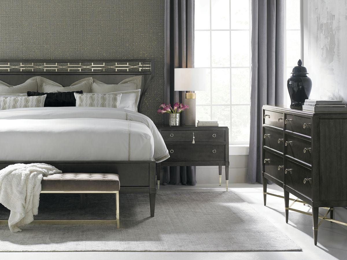 But functionality aside, the Caracole Masterpiece Bedroom Dresser is a true statement piece. Its tall square-tapered legs and thin crisscrossed stretchers exude dignified style, while the metal stretcher in Whisper of Gold adds a touch of glamour. With drawer interiors also painted in Seal Skin, every detail of this dresser has been carefully crafted to perfection.