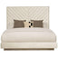 Bringing a modern organic feel to the well-appointed bedroom, this expressive bed is a statement-maker by design. Its tall, substantial headboard features a modern channel tufting design of converging angles that meet in the centre to create a mesmerizing chevron. A wood frame in an Ash Driftwood finish provides a worthy frame. This bed's fully finished sides appear to float above the ground suspended by an exquisite wood base also wearing the easy-going elegance of Ash Driftwood. Fabric: Manolo Ecru Fully upholstered headboard, footboard and siderail. Wood trim around headboard and base in Ash Driftwood. Plinth base. Adjustable slat roll bedding.