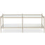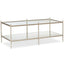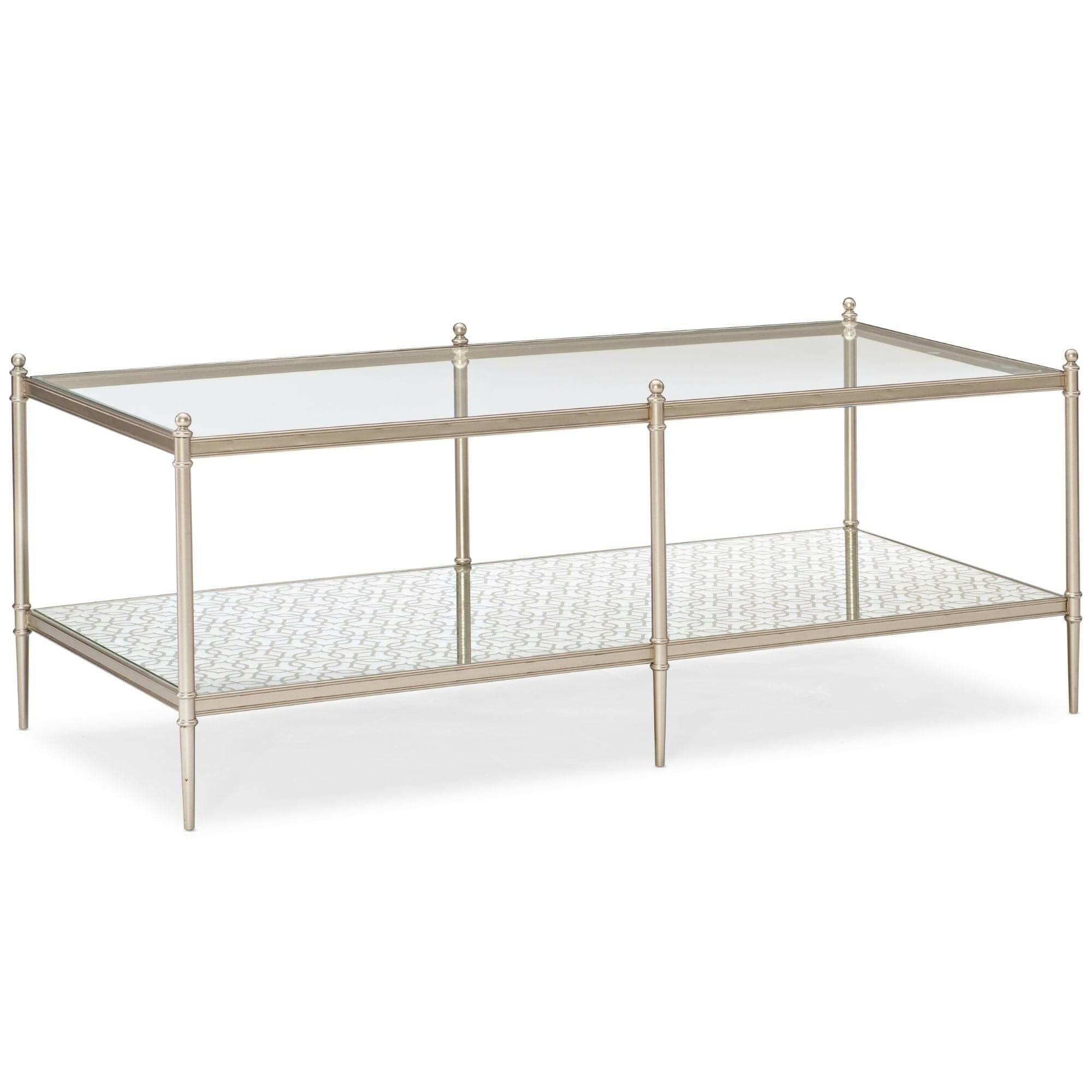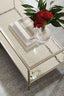 There’s only one way to describe this table: perfect. Crafted of glass, metal, and mirror, it comes by its glamourous character naturally. This distinctive table boasts a Neutral Metallic finish—a seamless blend of silver and gold—that accentuates its clean lines. A clear glass top creates another layer of visual appeal when you look through it and see the lower shelf and its back-painted mirror featuring an exquisite Silver Leaf pattern. Designed to blend seamlessly in any setting, this perfectly scaled table is the epitome of elegance. Metal frame finished in Neutral Metallic. Clear glass top. Silver Leaf pattern on back of bottom mirrored shelf.