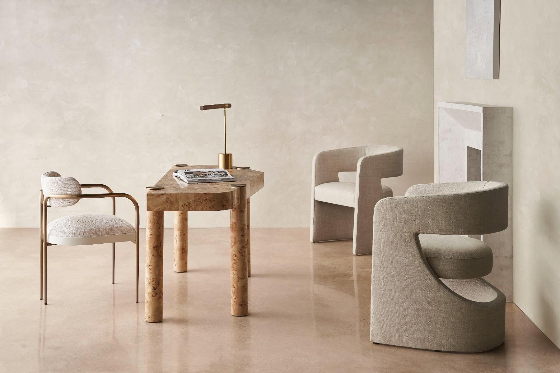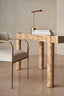 The Caracole Rhythm Desk is a truly unique piece of furniture that exudes modern elegance. Its asymmetrical, trapezoid shape is unlike any other desk on the market, making it a standout piece in any room. The desk is crafted with intricately pieced Mappa Burl veneers, adding a touch of luxury to its already stunning design.