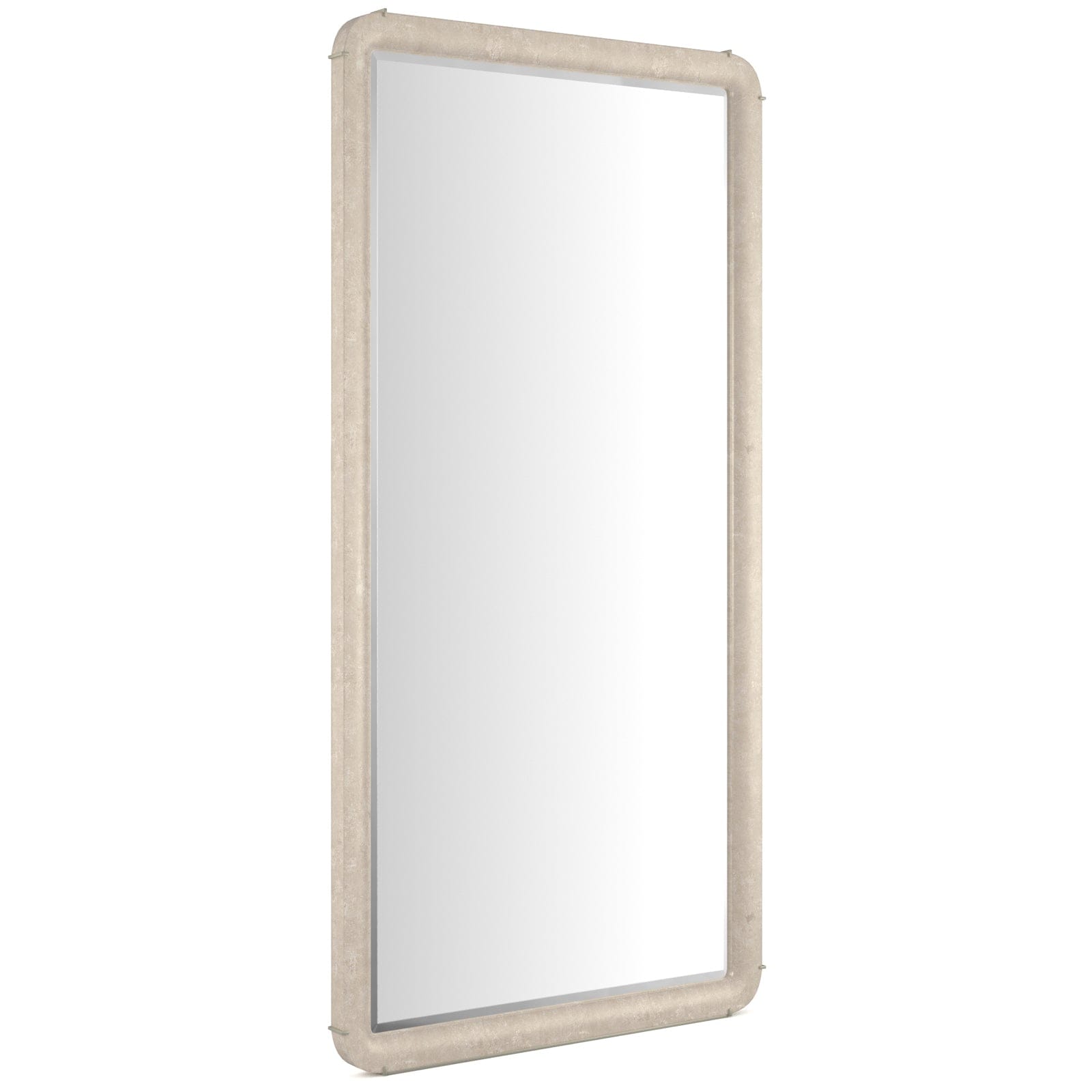Salver Floor MirrorInspired by the classic, silver serving tray with the same name, this beveled floor mirror is designed to stand or hang vertically. The subtly curved, poplar wood frame is finished in a glinting Oracle Silver Leaf with metal corner details in Polished Silver paint. Consult professional installer for wall mounting.FEATURES:Wood frame finished in Oracle Silver Leaf.Decorative Metal Accents in Polished Silver.1 in beveled mirror.Mirror to be placed vertically on the ground, tip kit included.Mirror is not intended to hang on the wall. Consult professional installer for wall mounting.Caracole ClassicTaking the classics of furniture design and pairing with unique materials and refined finishes, this portfolio was born of our vision to create high-style furniture with a personality of elegance and individuality. Bring a breath of fresh air to interiors with distinctive pieces for every room of the home, while blurring the lines between classical styling and modern taste. These playfully named pieces address whole room environments through an eclectic lifestyle approach, instilling a scheme with versatile furniture that are sophisticated, creative and classy in equal measure.